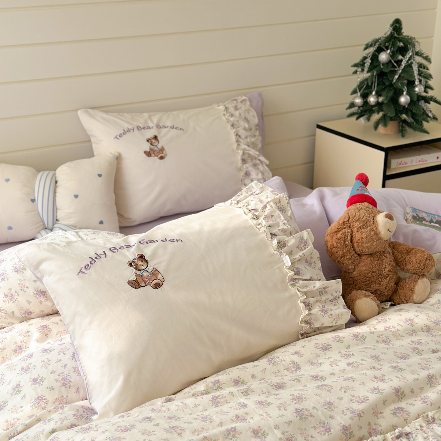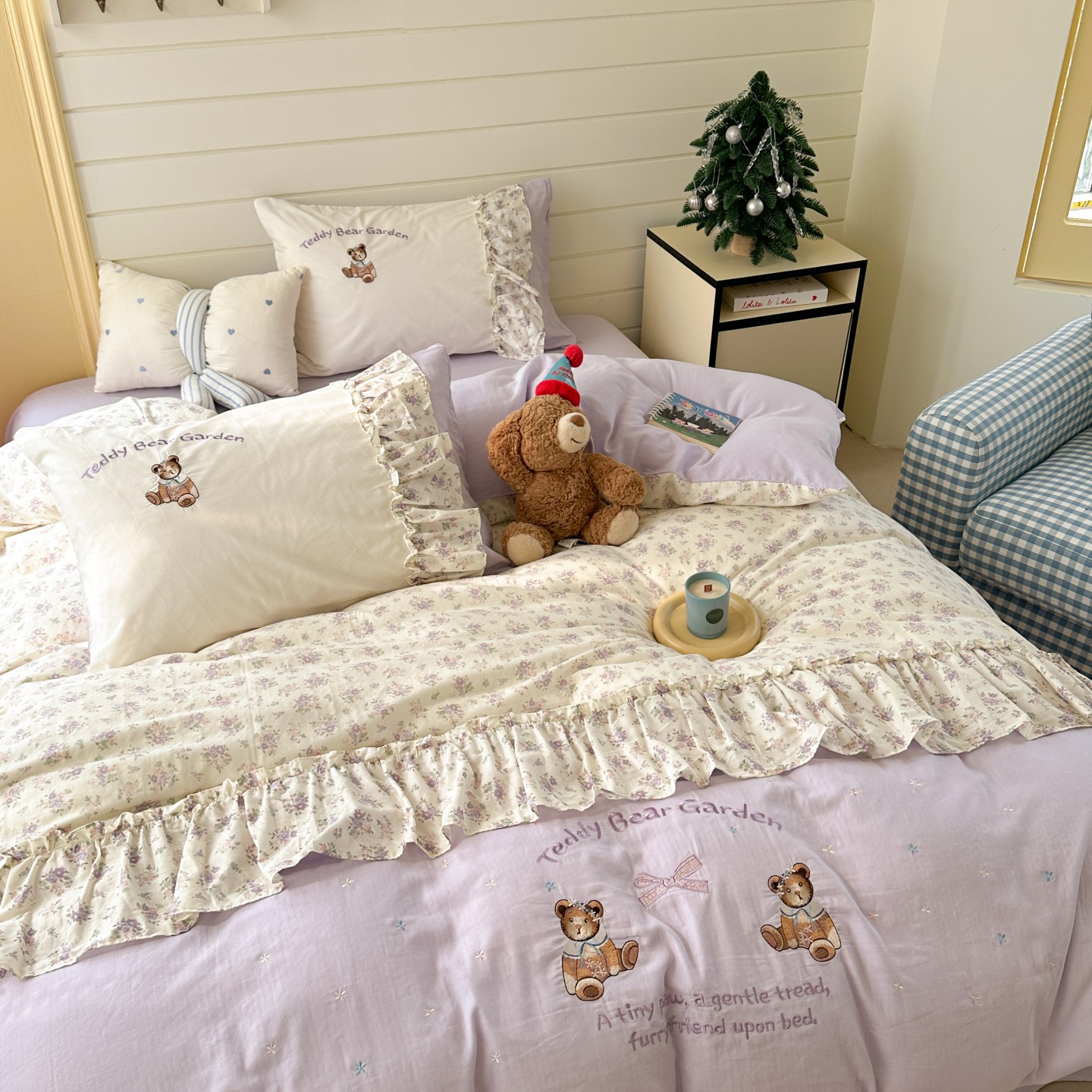 (总)觅糖家纺 2025新款牛奶绒荷叶边小小系列四件套,小小爱心白,小小樱桃酱