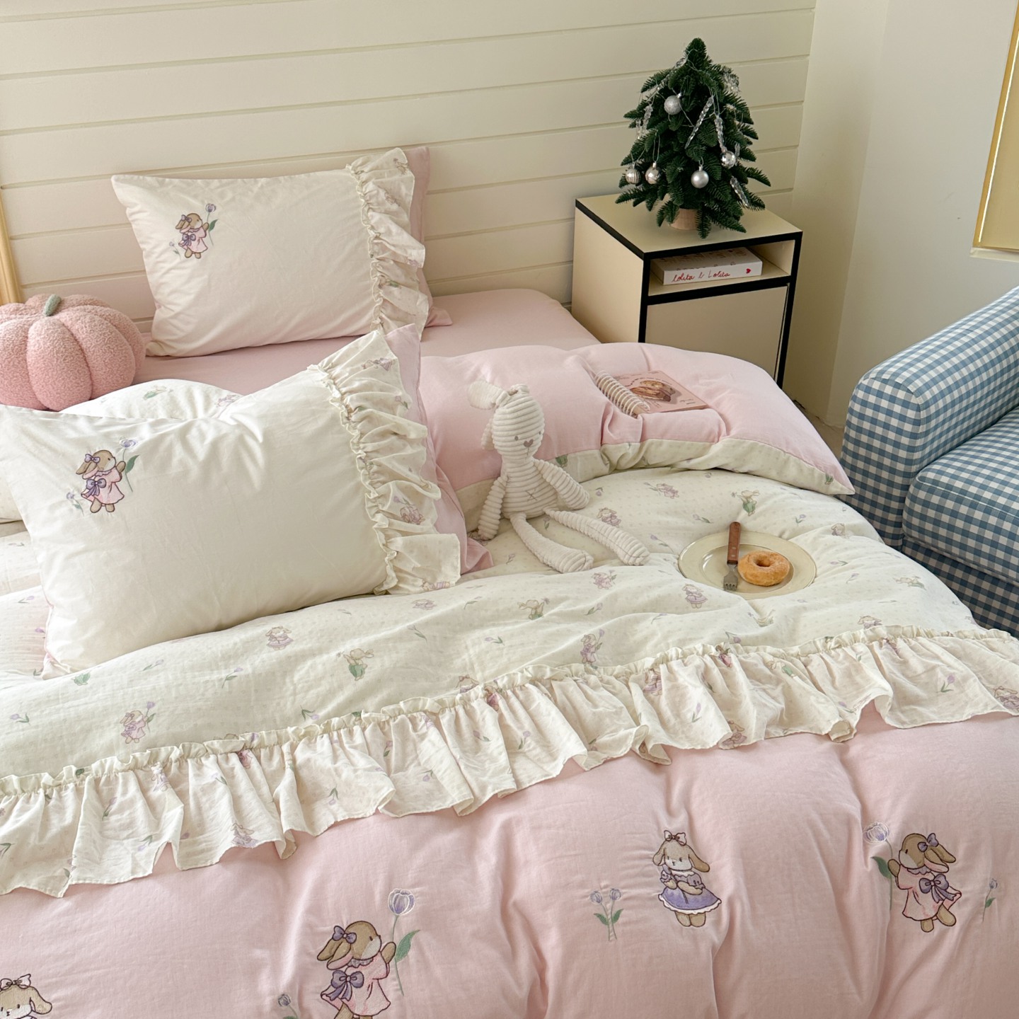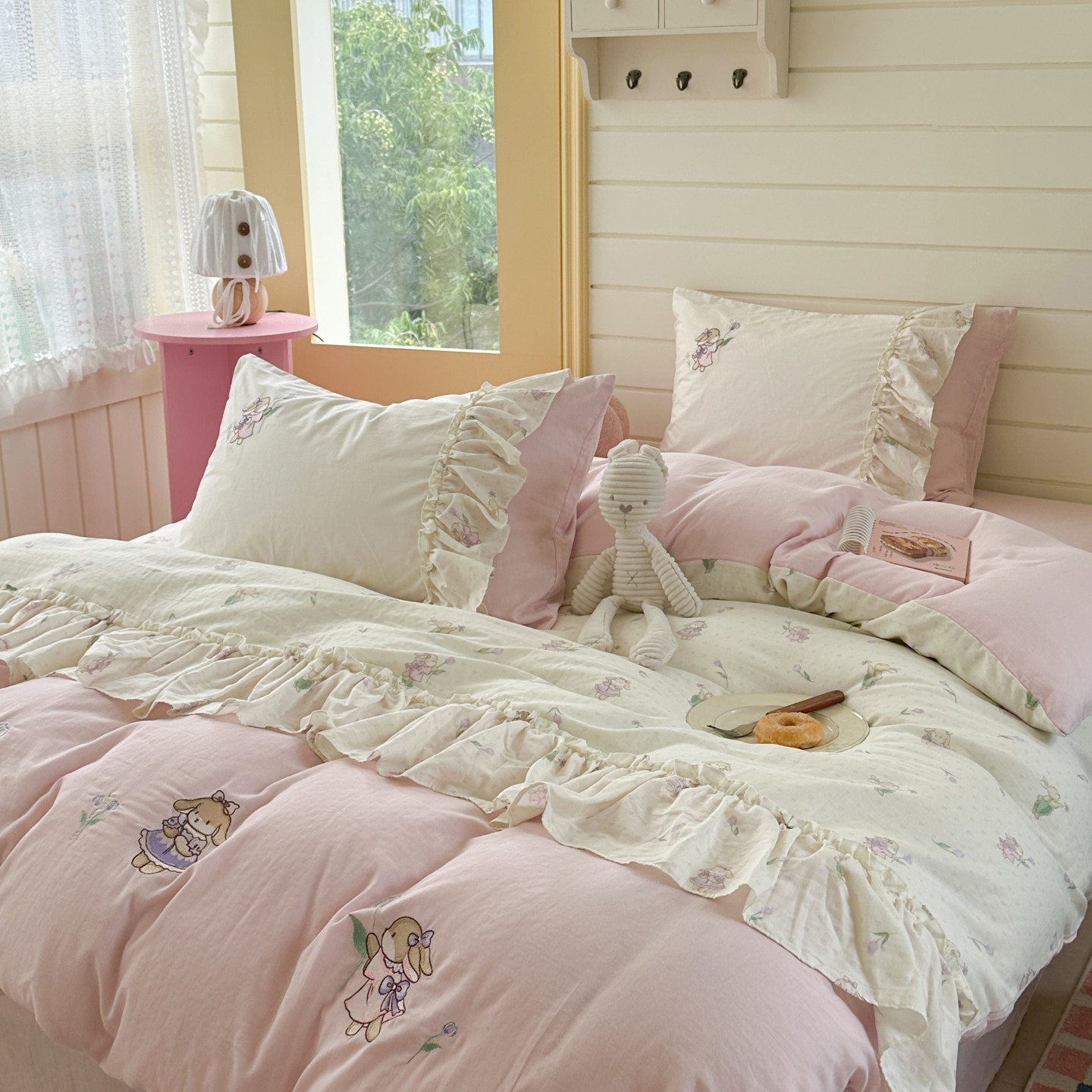 (总)觅糖家纺 2025新款色织水洗提花小波点贴布系列四件套,sweet兔,滑板小狮子,可爱松鼠,奶油比熊,小熊的故事,小羊驼
