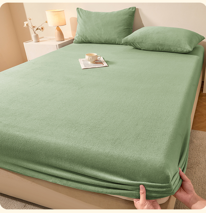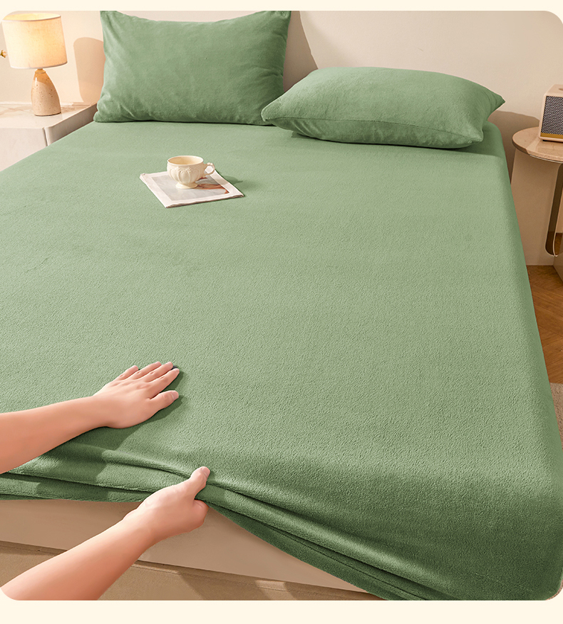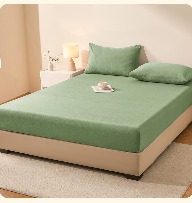 优眠坊 2025新款单层高克重牛奶绒纯色床笠 翡翠绿
