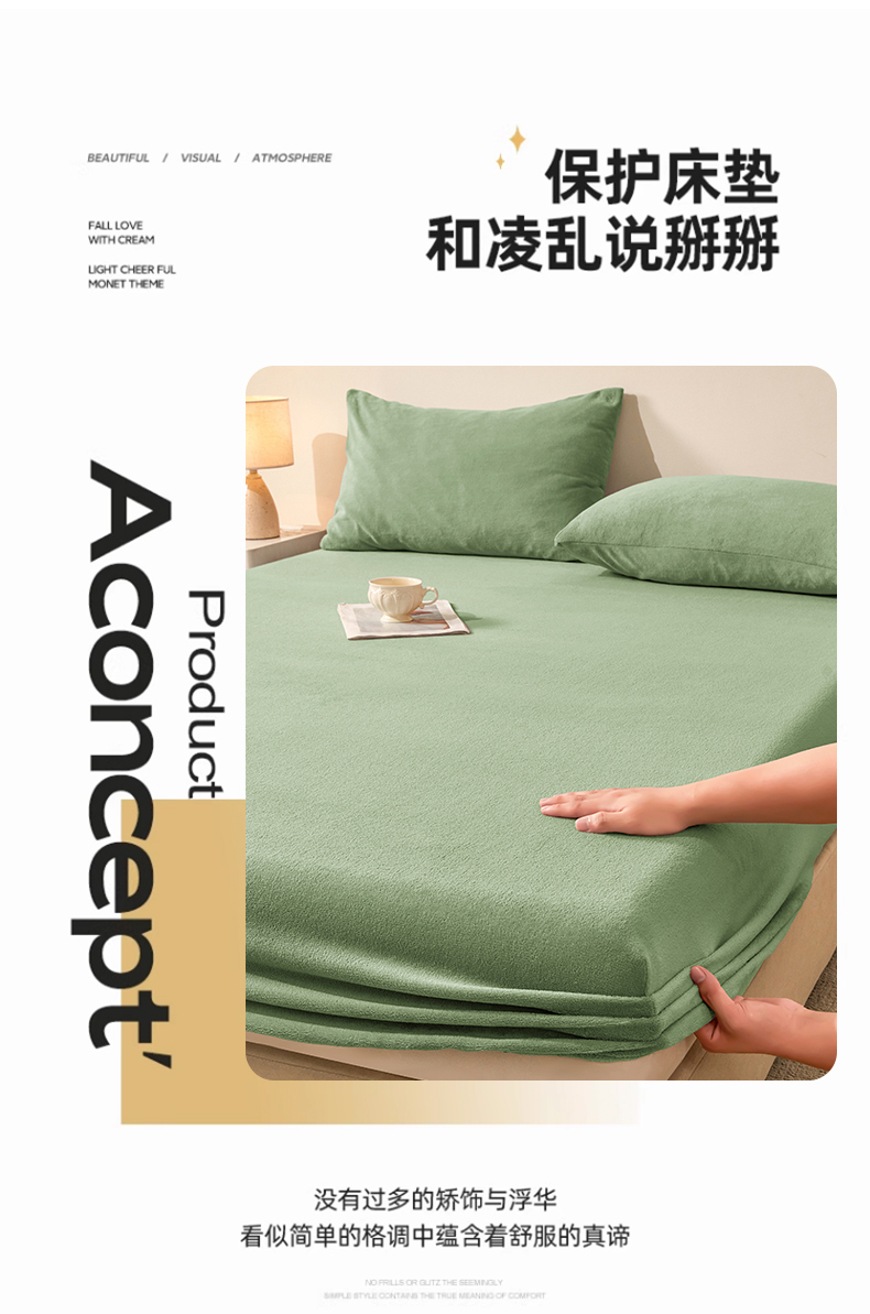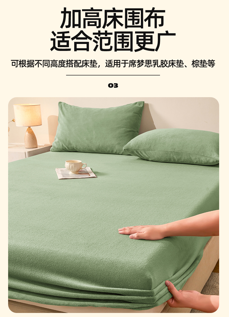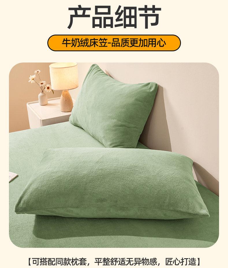 商品名称:优眠坊 2025新款单层高克重牛奶绒纯色床笠 翡翠绿