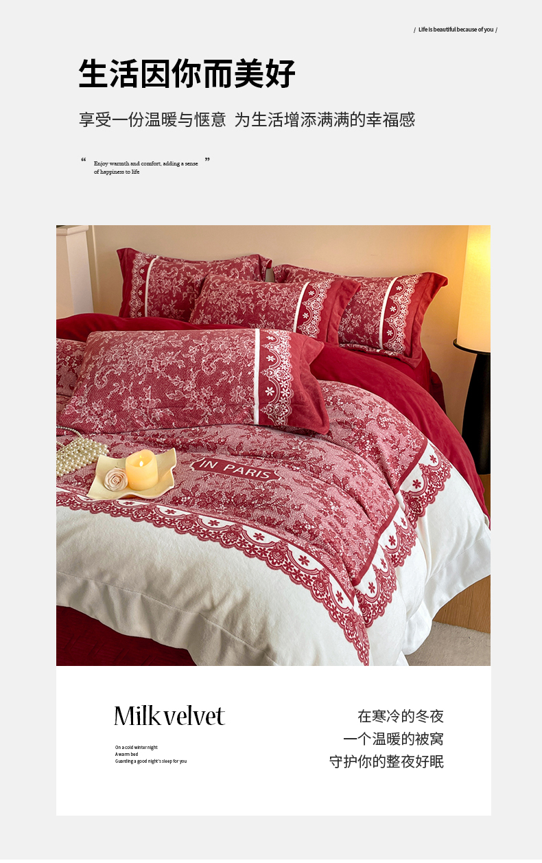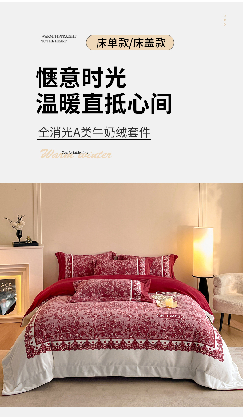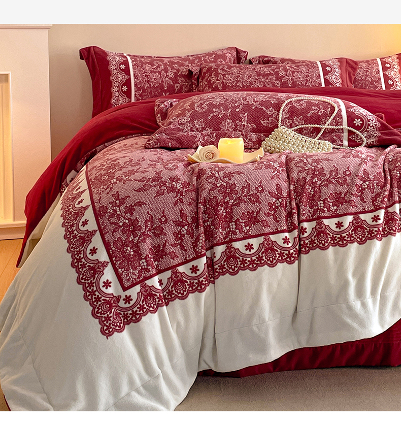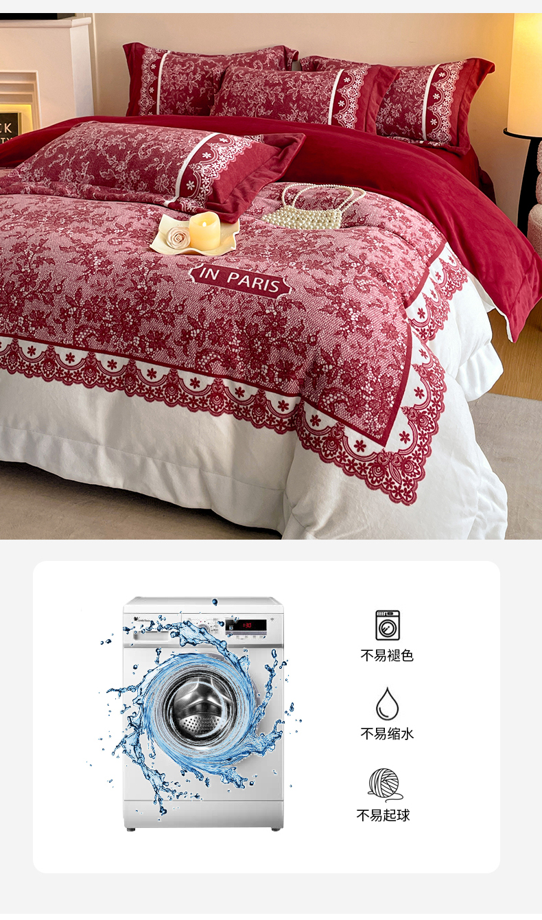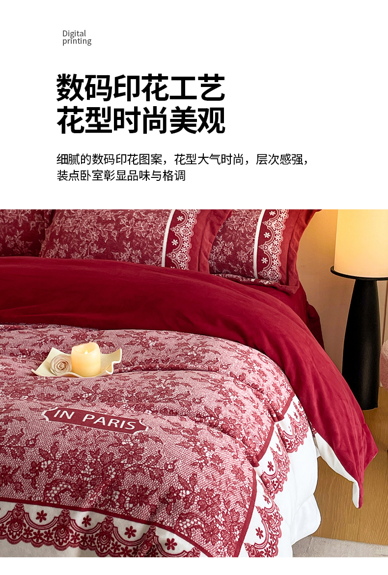 当前位置: 91家纺网 > 商品网购 > 床品套件 > 四件套 > 牛奶绒四件套 > 新方向 2025新款高克重240克A类全消光数码印花牛奶绒四件套-恋语 恋语-洋酒红
