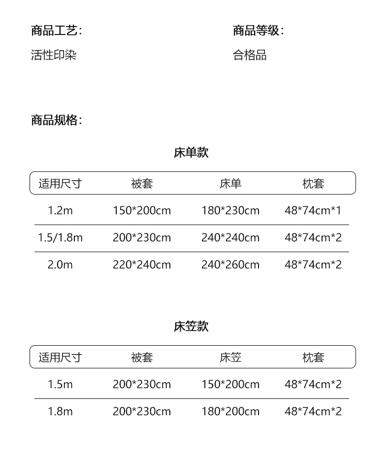 【床笠款】1.8四件套-被套200x230 | ¥108.00 |