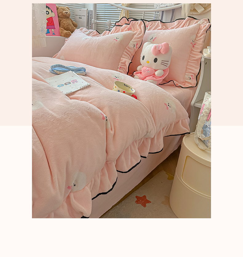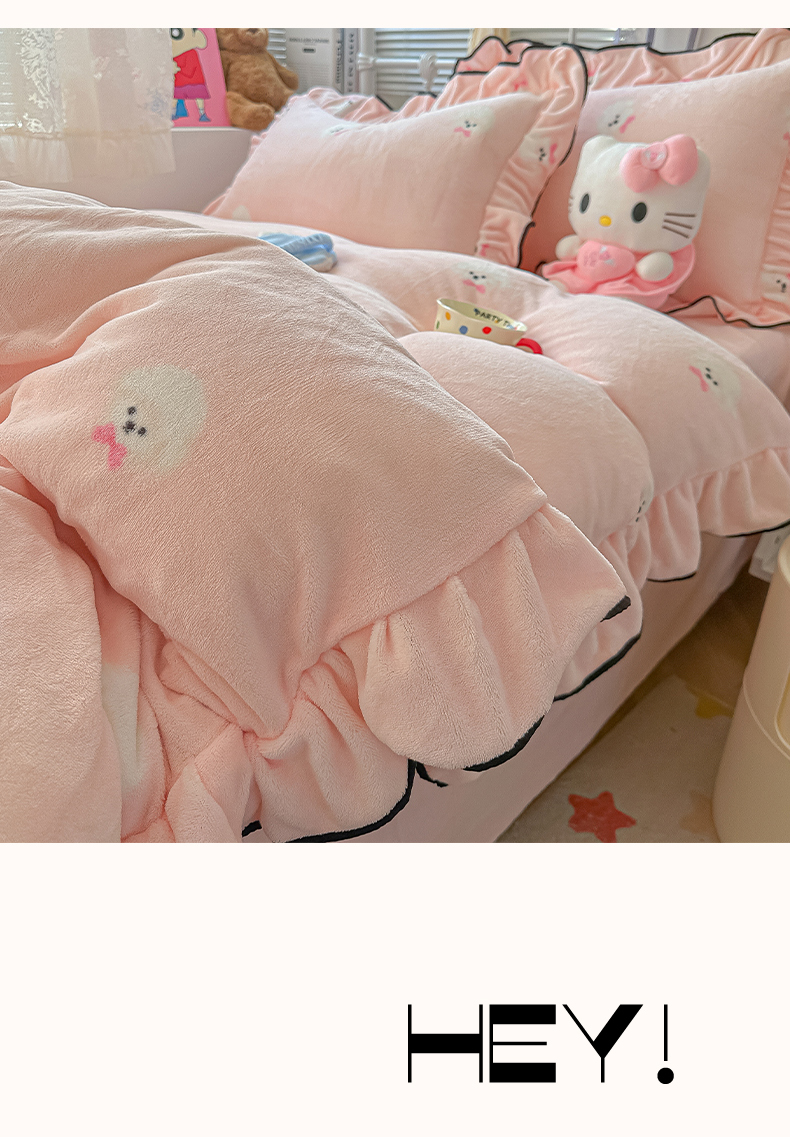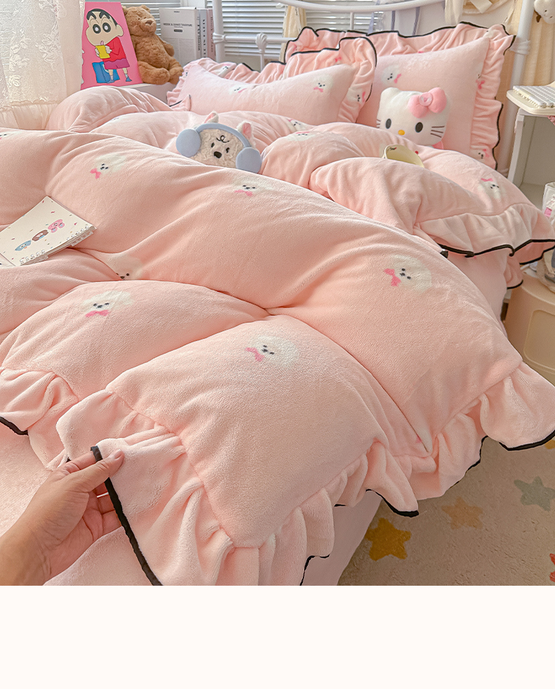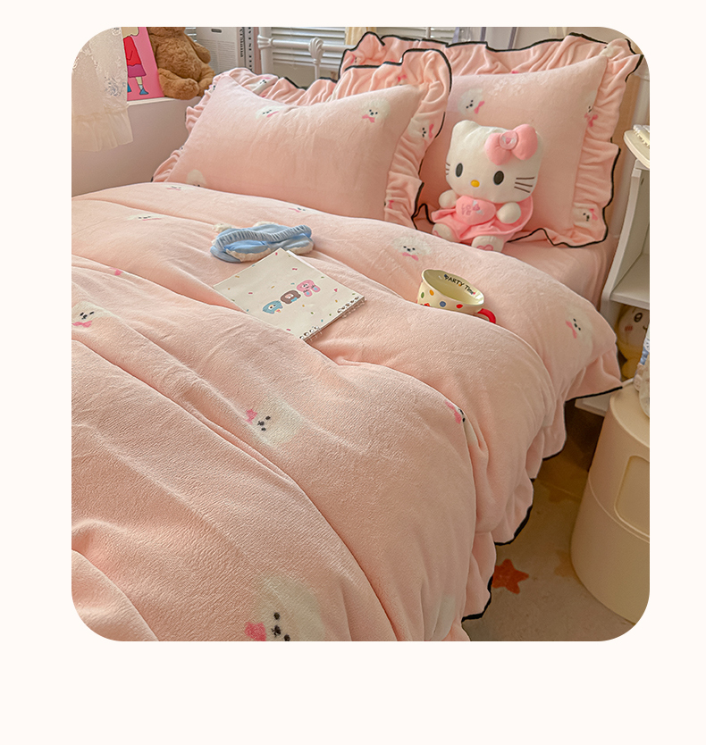 当前位置: 91家纺网 > 商品网购 > 床品套件 > 四件套 > 牛奶绒四件套 > 韩都家居 2025新款亲肤舒适韩版温暖牛奶绒四件套-花边款 蝴蝶结小狗-玉