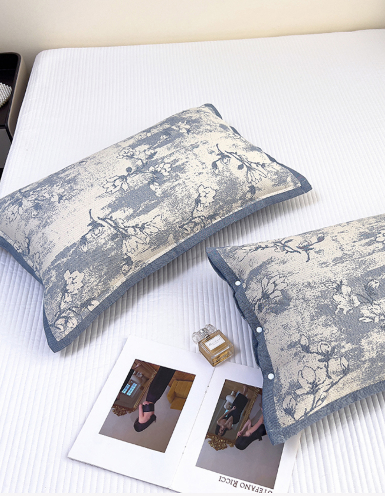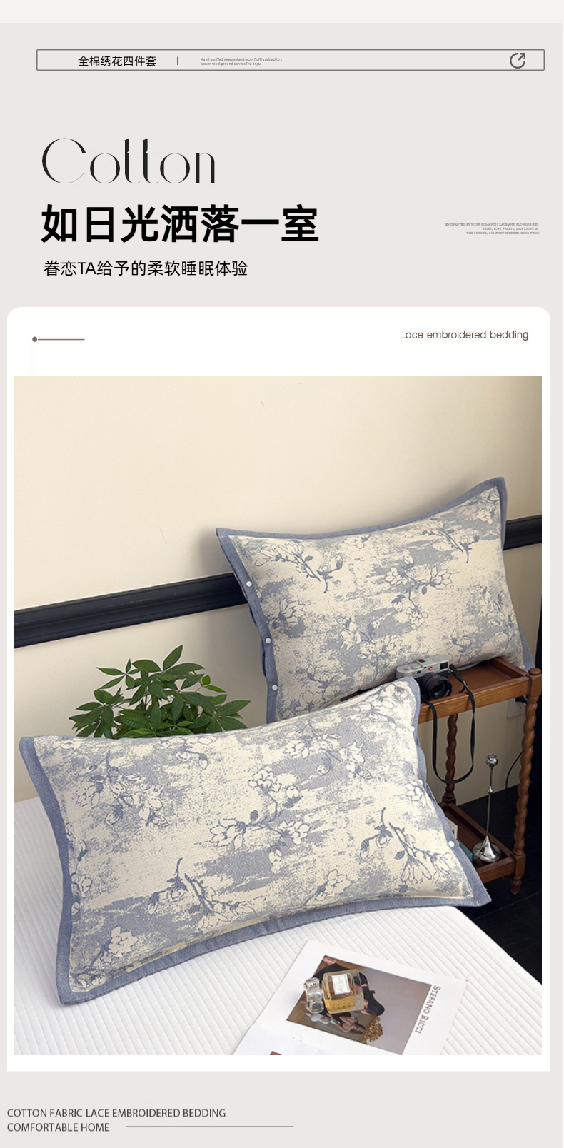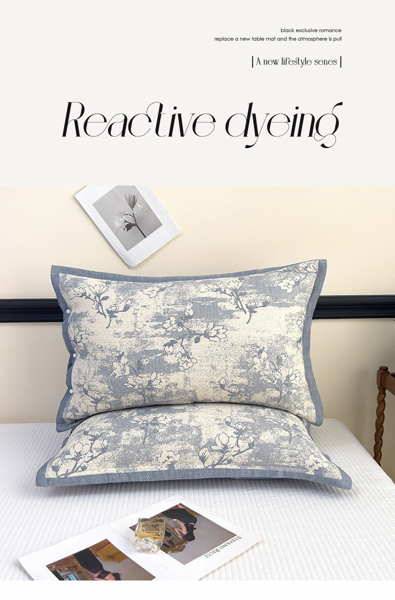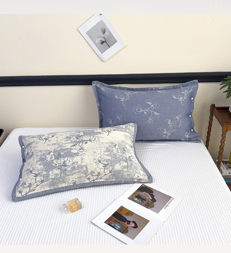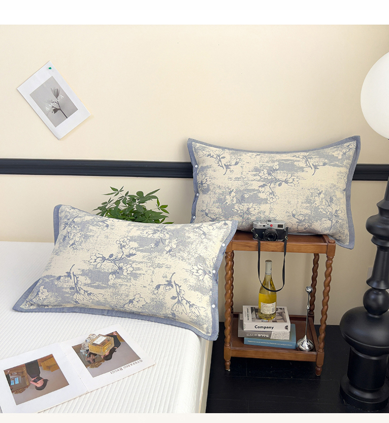 悦然毛巾被 2025新款四层纱全棉纱布枕套 花树蓝