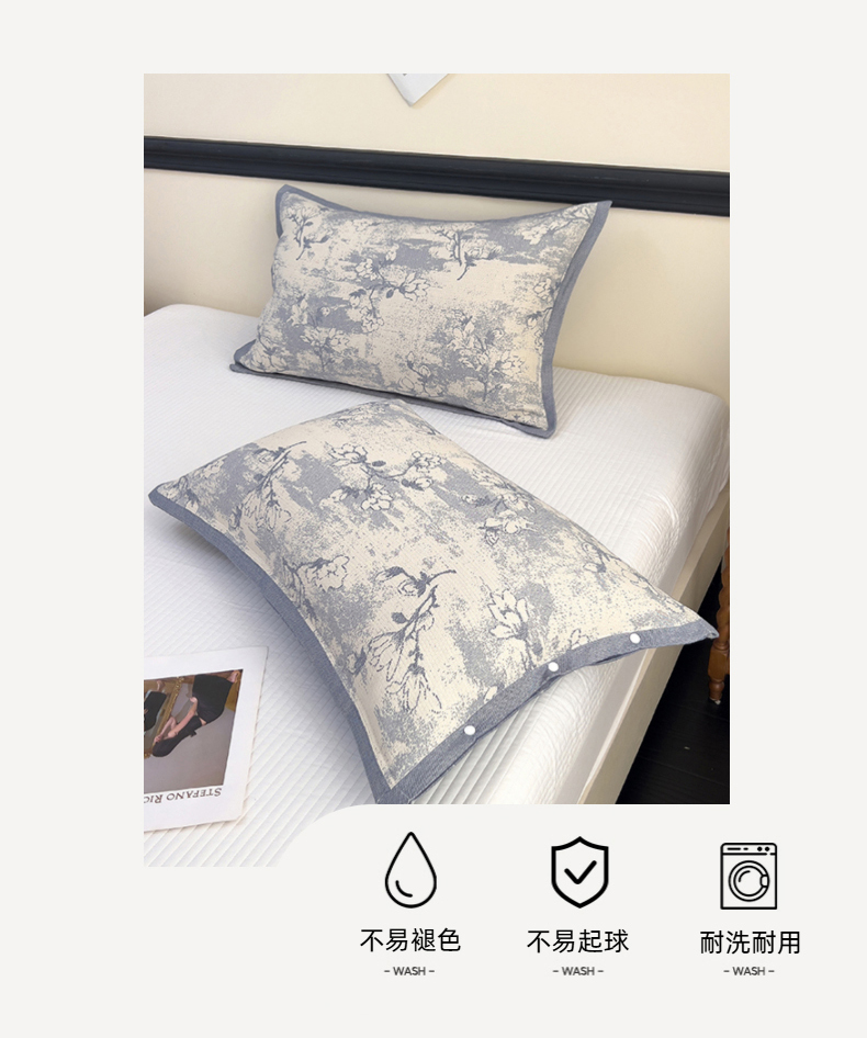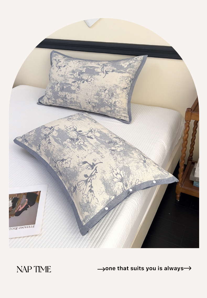 (总)悦然毛巾被 2025新款全棉四层提花纱布美拉德凤格枕套,花蝶红,花蝶咖,花蝶蓝,蔓叶咖,蔓叶蓝,蔓叶棕,玫瑰格调咖,玫瑰格调棕,素布花灰,素布花蓝,野韵,野韵棕,组合