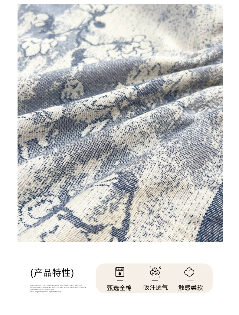 (总)悦然毛巾被 2026新款原麻水洗提花四件套,粉枝絮语,花境织梦,咖枝雾影,蓝花雾影,紫萝绮梦,紫莓花田,紫枝凝香,棕枝花信