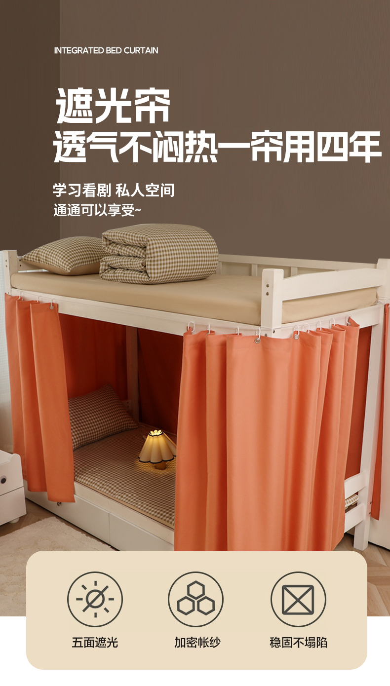 商品名称:(总)2025新款纯色床帘强遮光宿舍专用大学生寝室加厚帘子床幔上下铺遮挡帘子通用