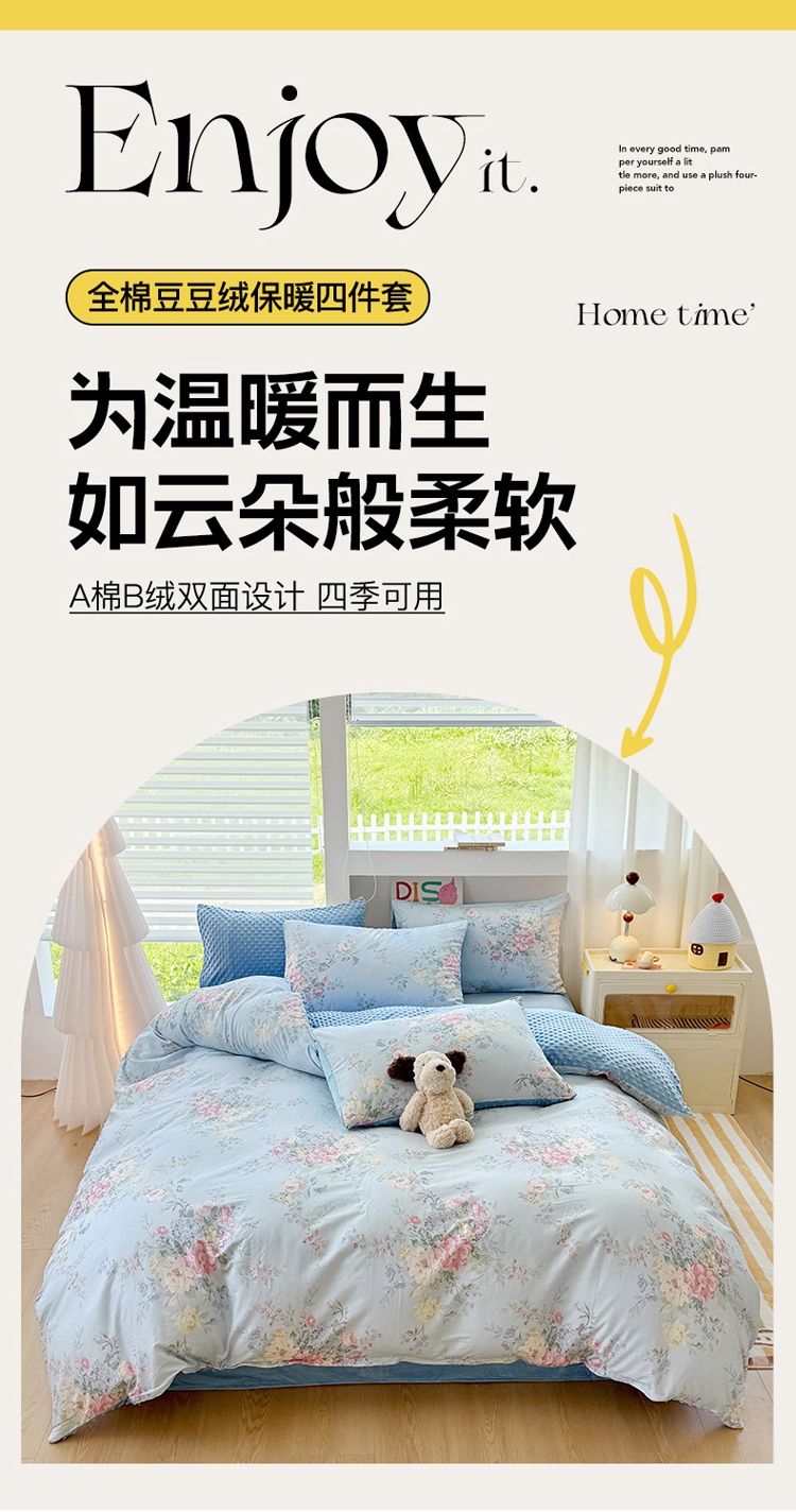 当前位置: 91家纺网 > 商品网购 > 床品套件 > 四件套 > 全棉普通四件套 > 优迈 2025学生季全棉高克重豆豆绒三四件套加厚保暖婴儿绒牛奶绒单被套单人双人被套加大号棉加绒三四件套 花团锦簇