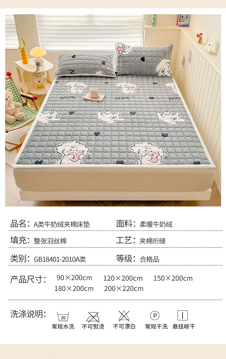 当前位置: 91家纺网 > 商品网购 > 床垫/床褥 > 羊羔绒床垫 > 初心家纺 2025新款高克重牛奶绒印花夹棉床垫 时尚灰