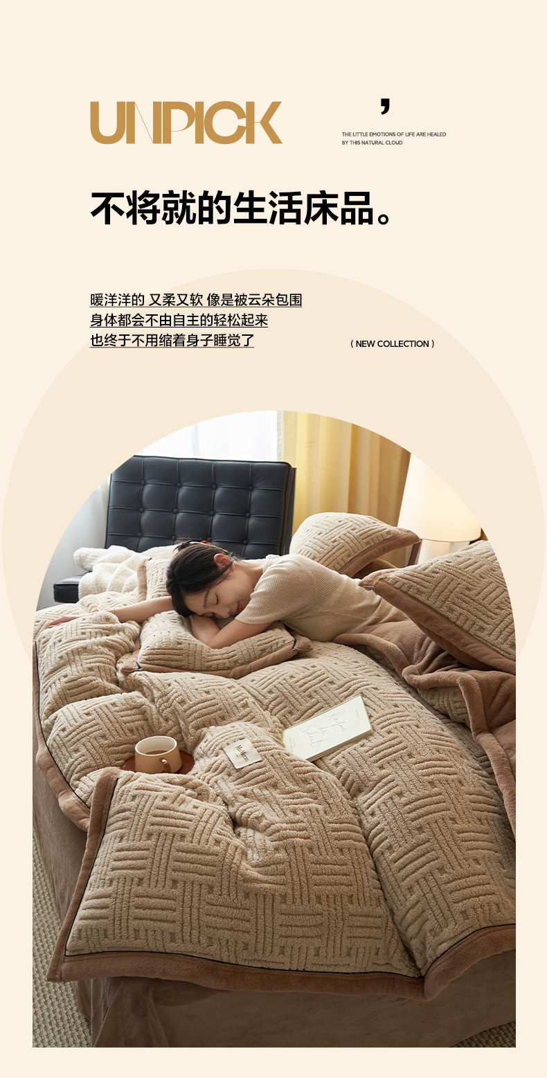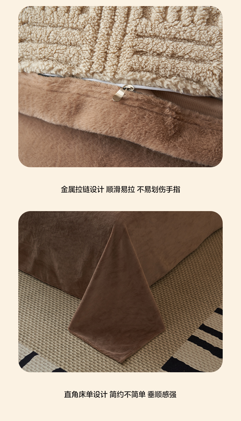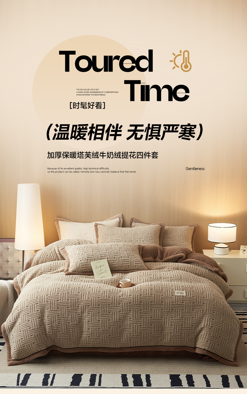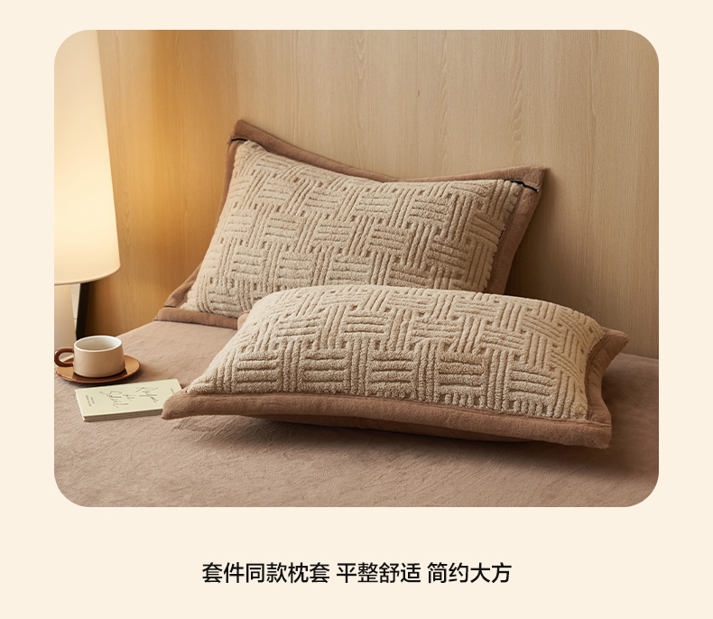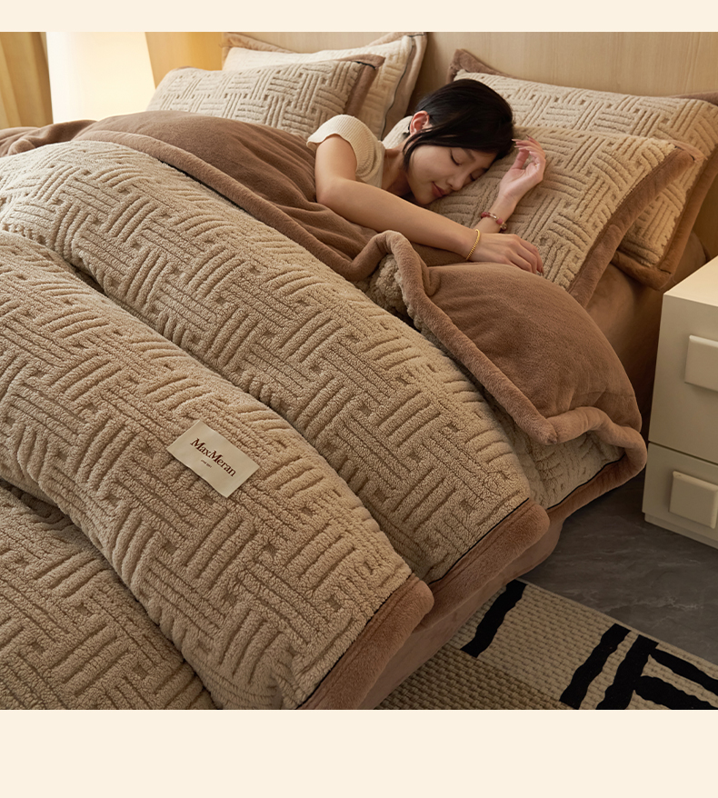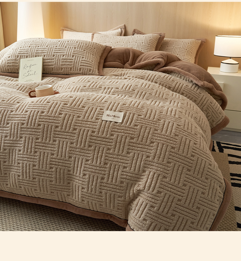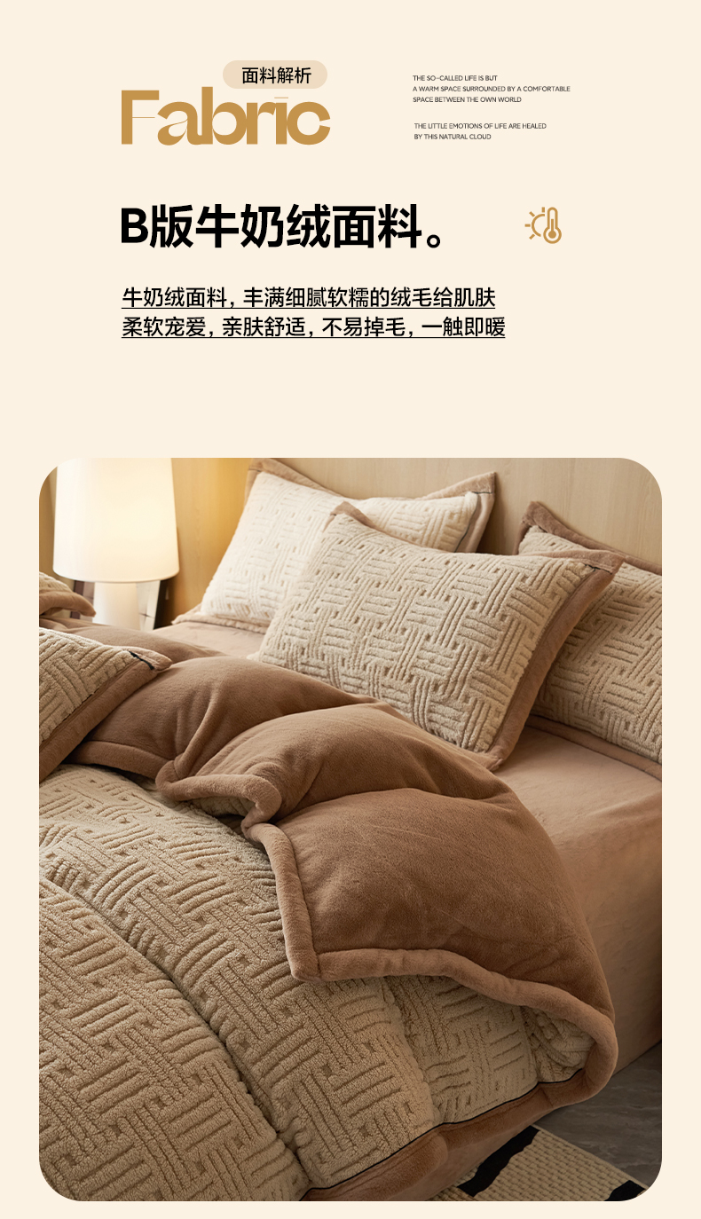 当前位置: 91家纺网 > 商品网购 > 床品套件 > 四件套 > 牛奶绒四件套 > 晨曦家纺 2025新款230克加厚保暖塔芙绒牛奶绒四件套法兰绒 简爱-深咖