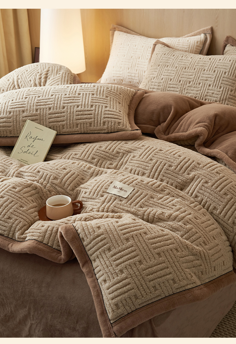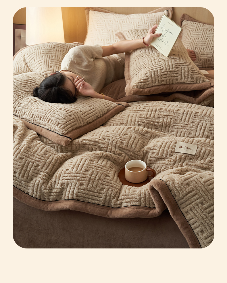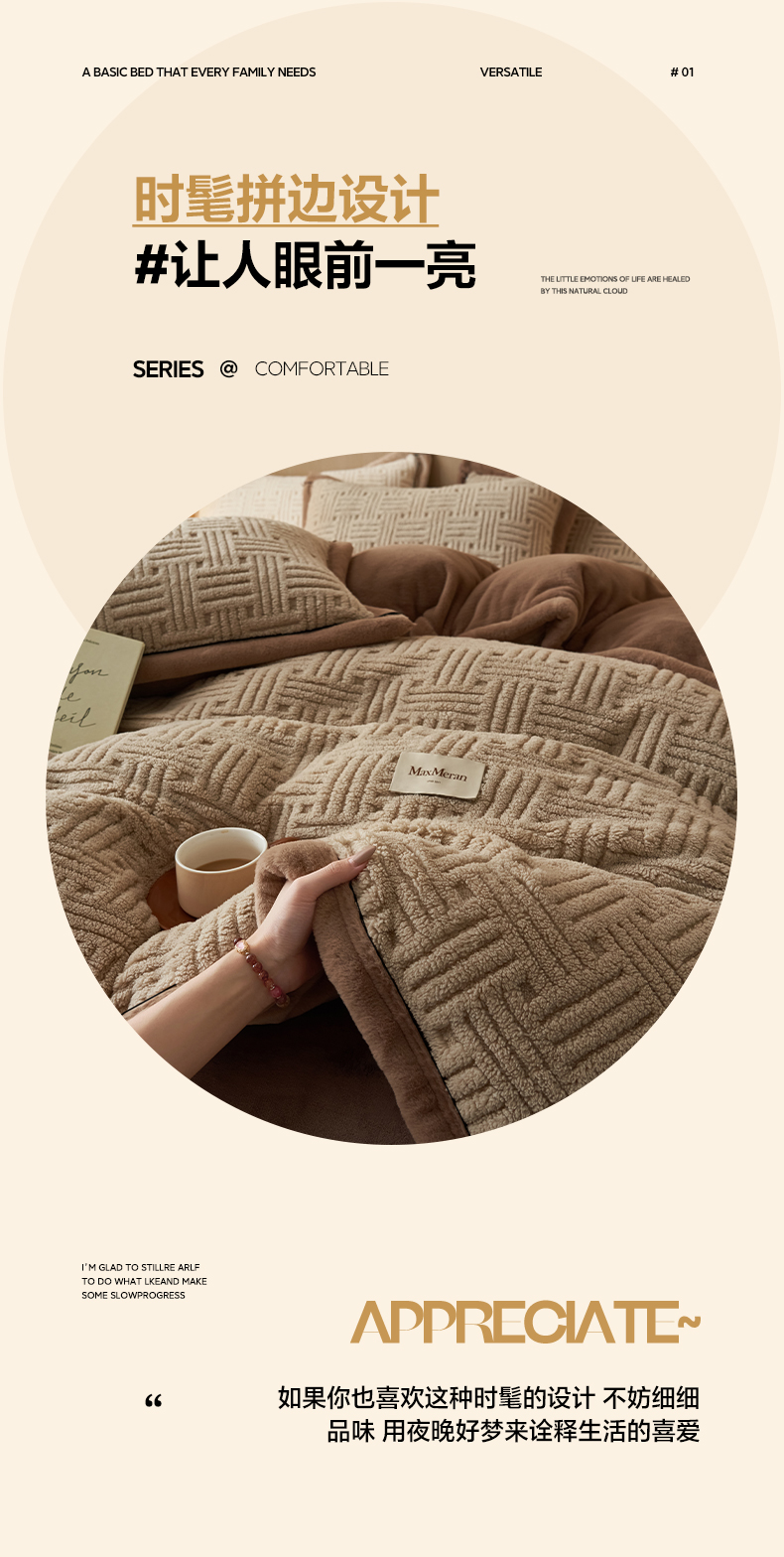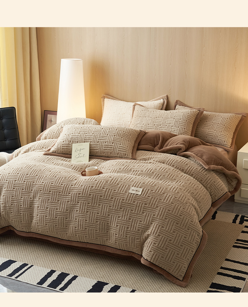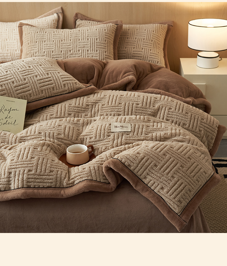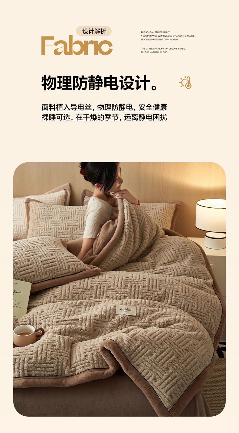 当前位置: 91家纺网 > 商品网购 > 床品套件 > 四件套 > 牛奶绒四件套 > 晨曦家纺 2025新款230克加厚保暖塔芙绒牛奶绒四件套法兰绒 简爱-深咖