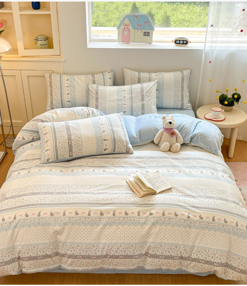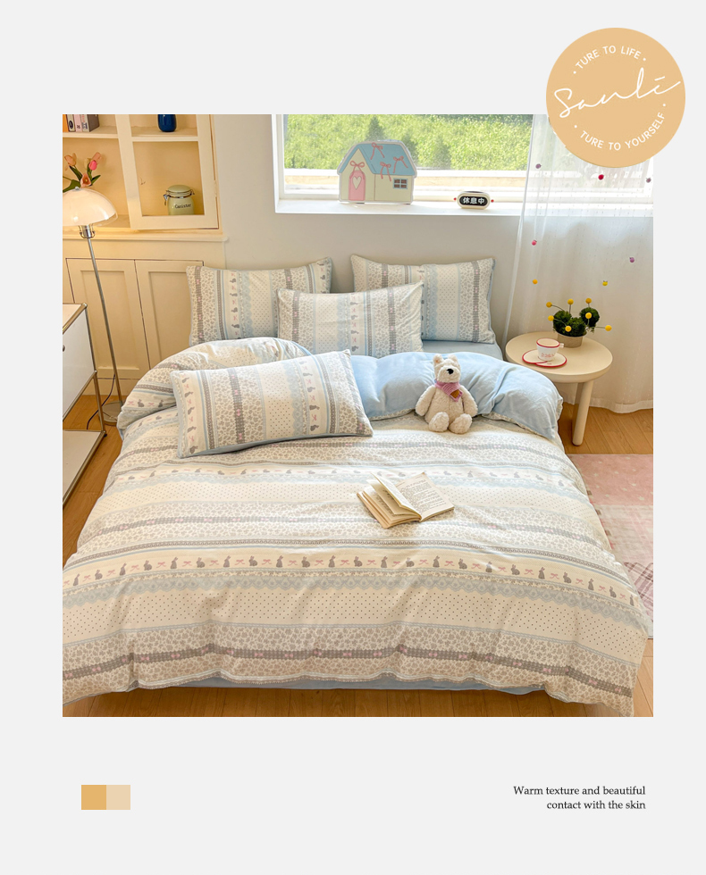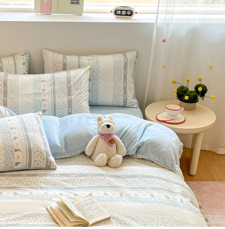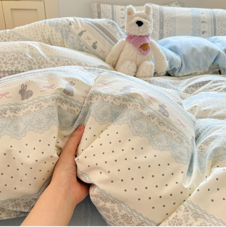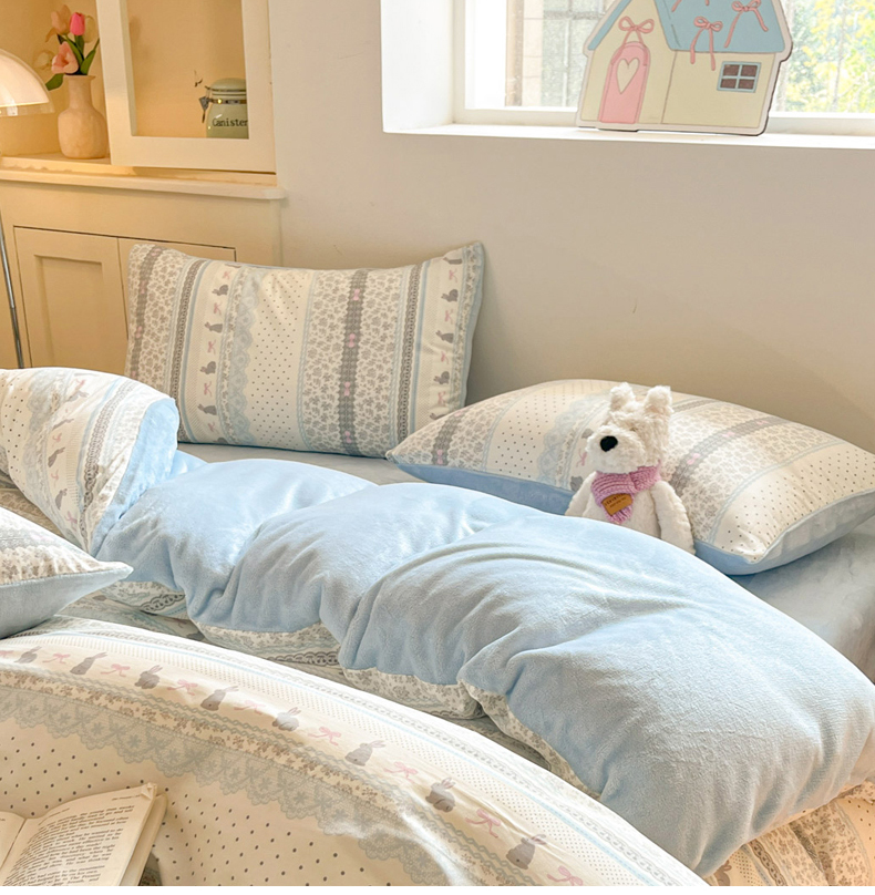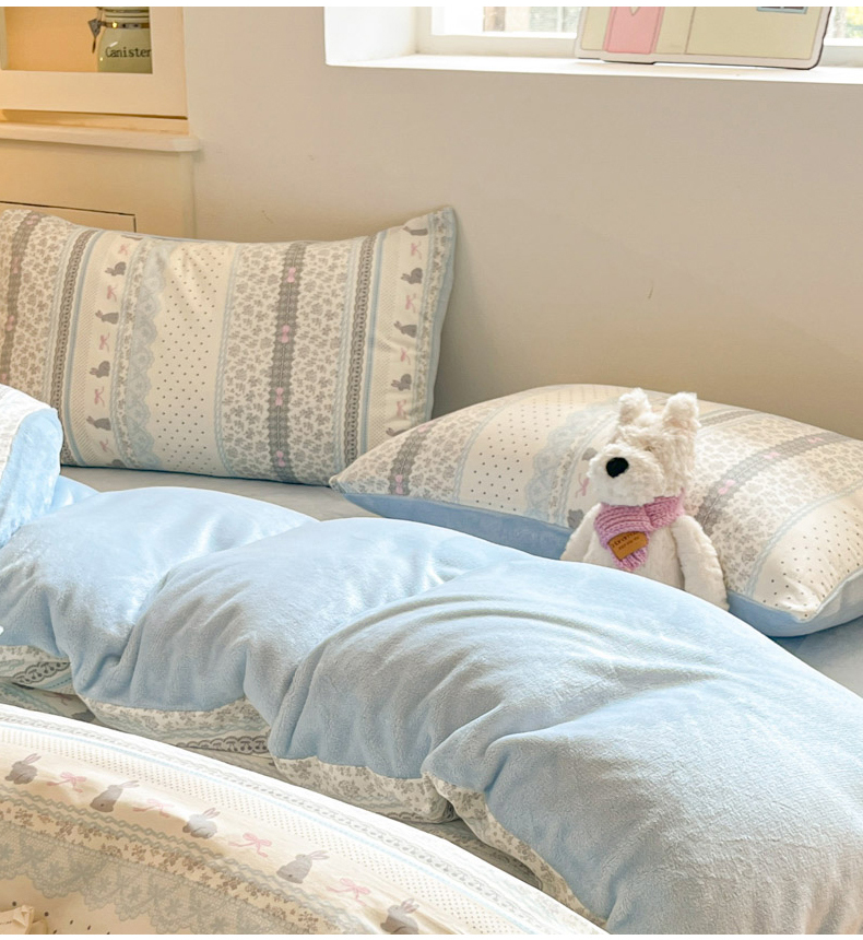 当前位置: 91家纺网 > 商品网购 > 床品套件 > 四件套 > 牛奶绒四件套 > 麦伦家居 2025秋冬新款多功能床品全棉+牛奶绒印花四件套 花边兔