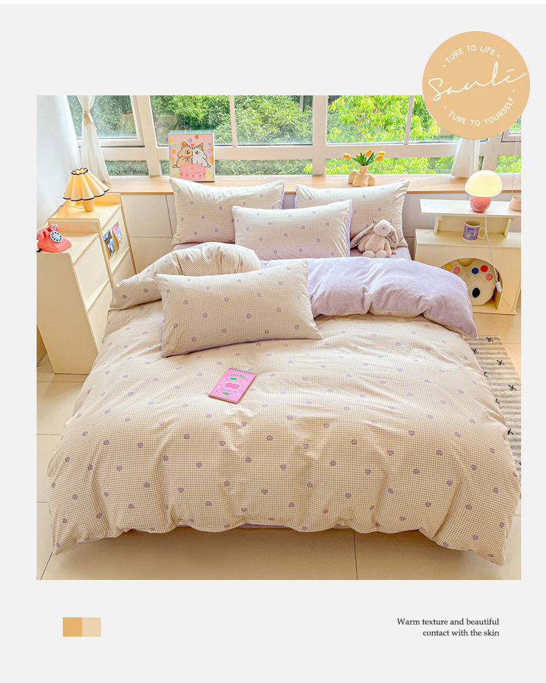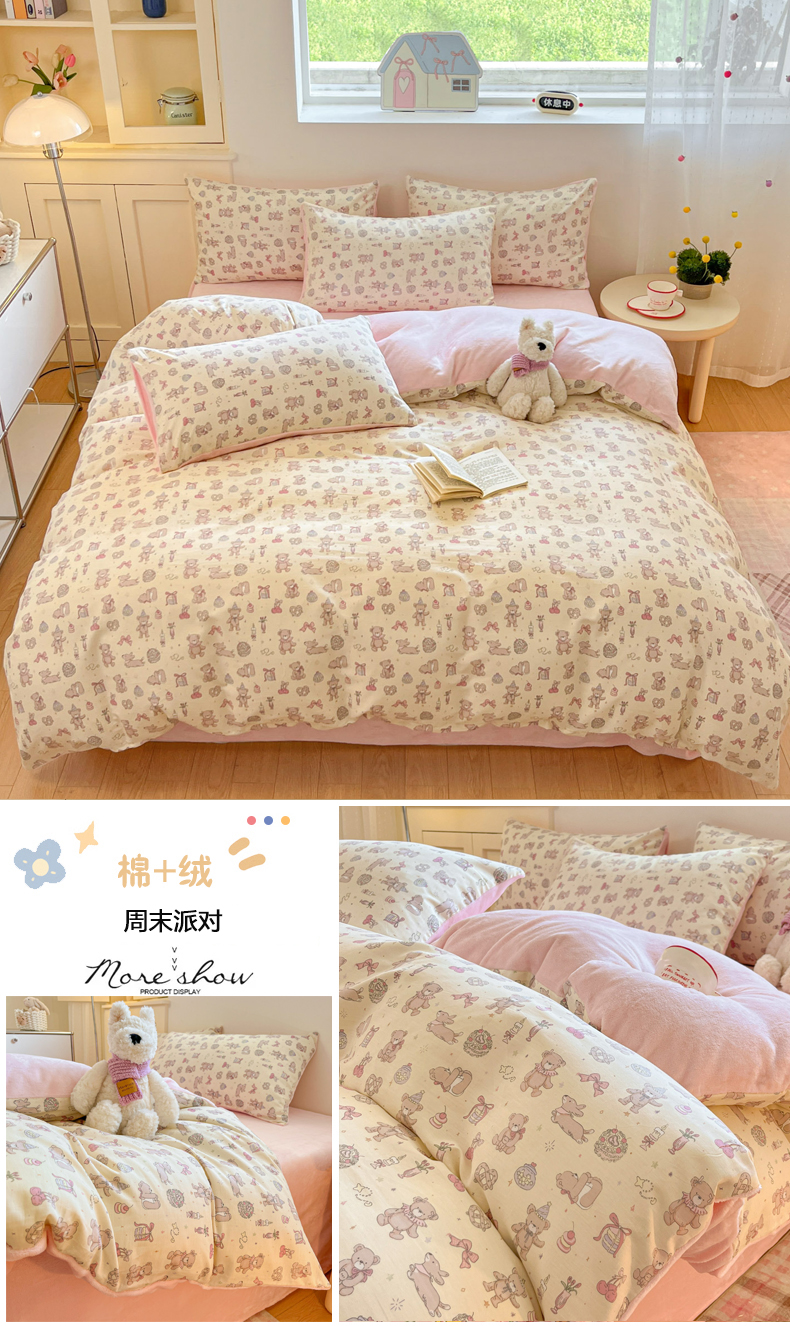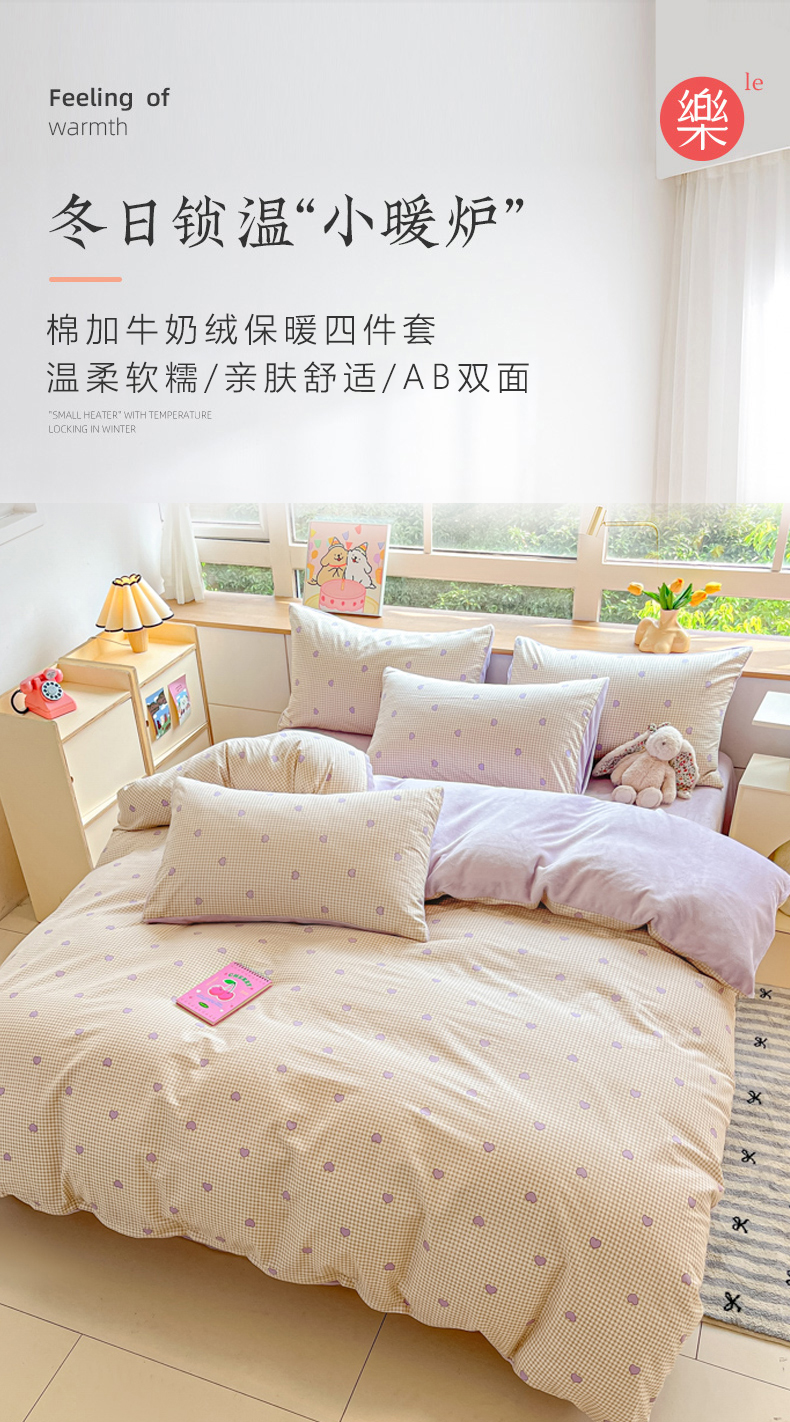 当前位置: 91家纺网 > 商品网购 > 床品套件 > 四件套 > 牛奶绒四件套 > 麦伦家居 2025秋冬新款多功能床品全棉+牛奶绒印花四件套 爱的小屋