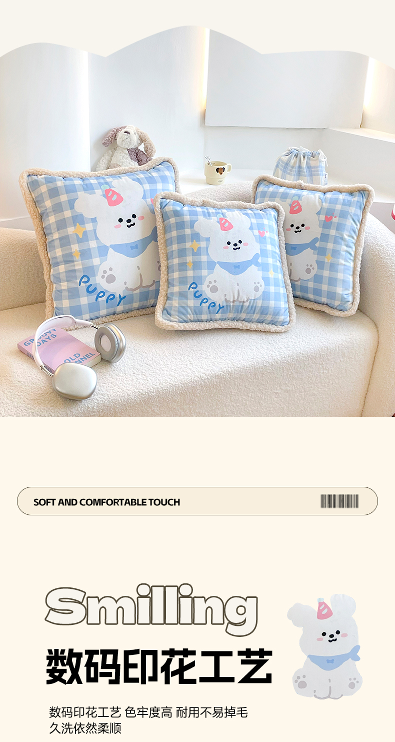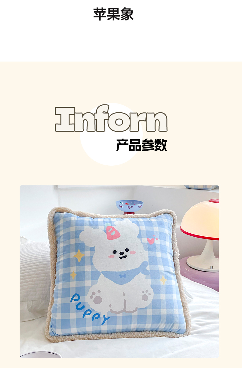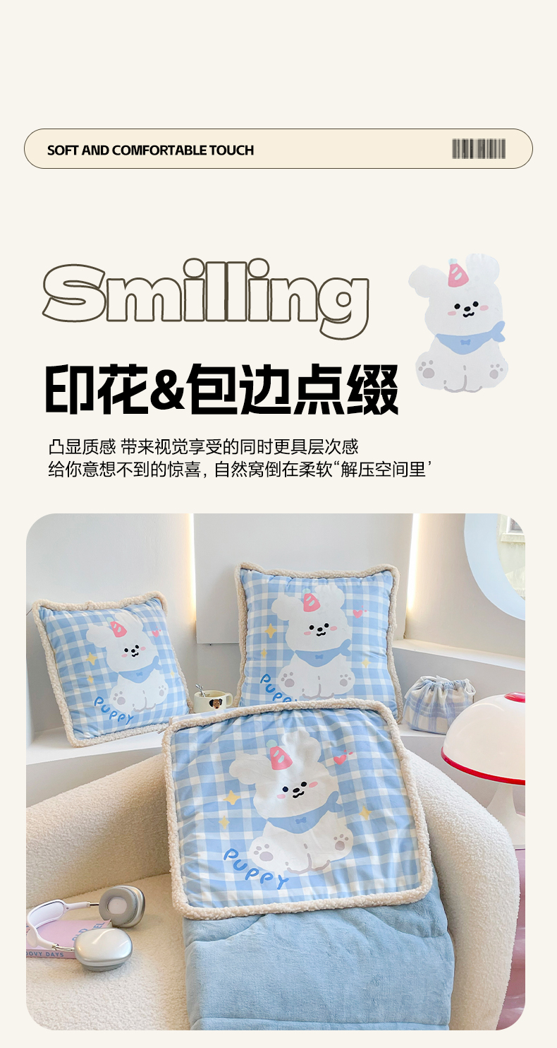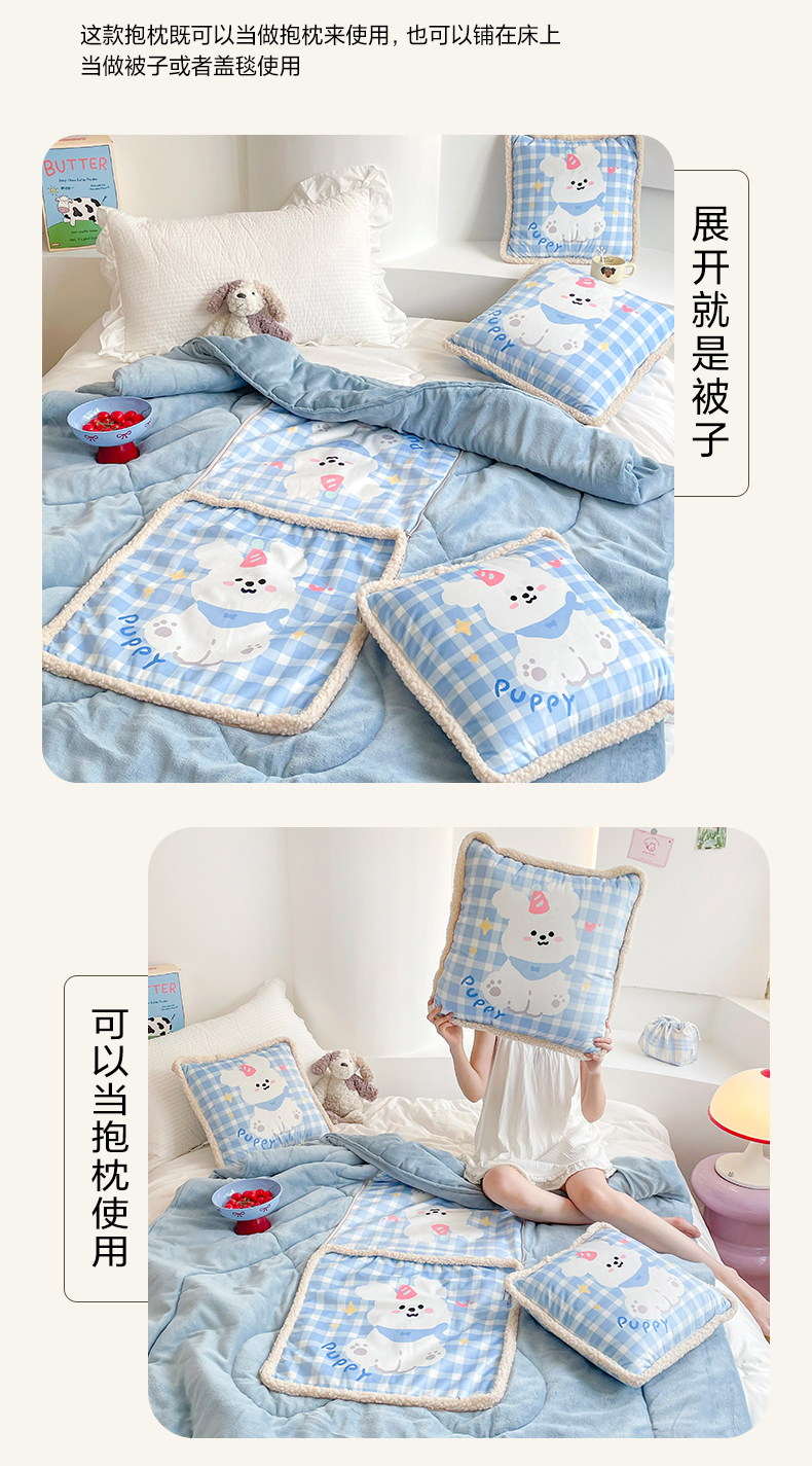 商品名称:番茄+ 2025新款羊羔毛花边绒抱枕被 快乐狗