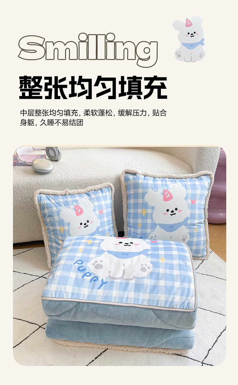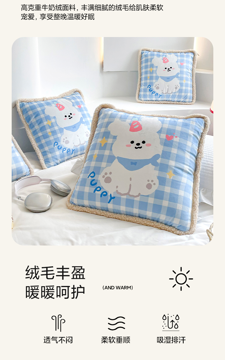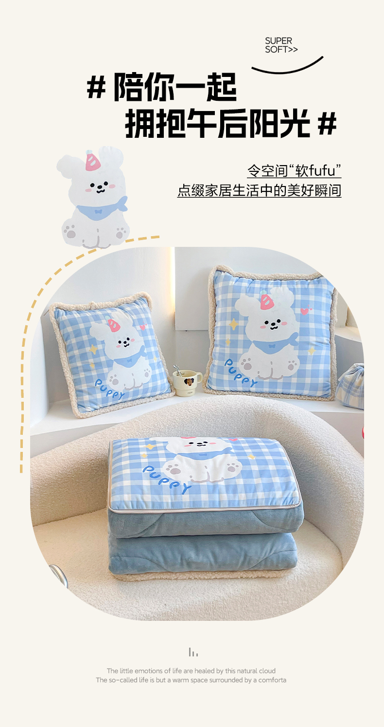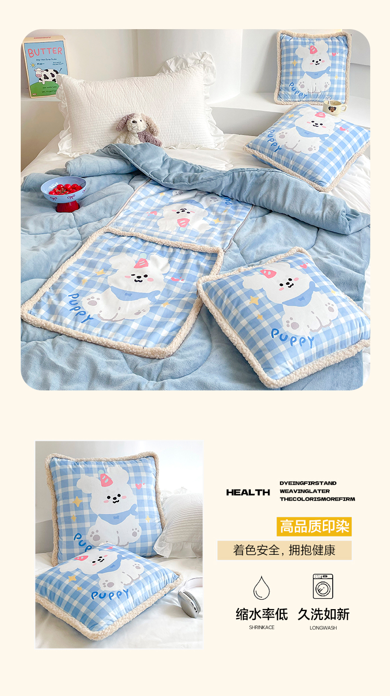 商品名称:番茄+ 2025新款羊羔毛花边绒抱枕被 快乐狗