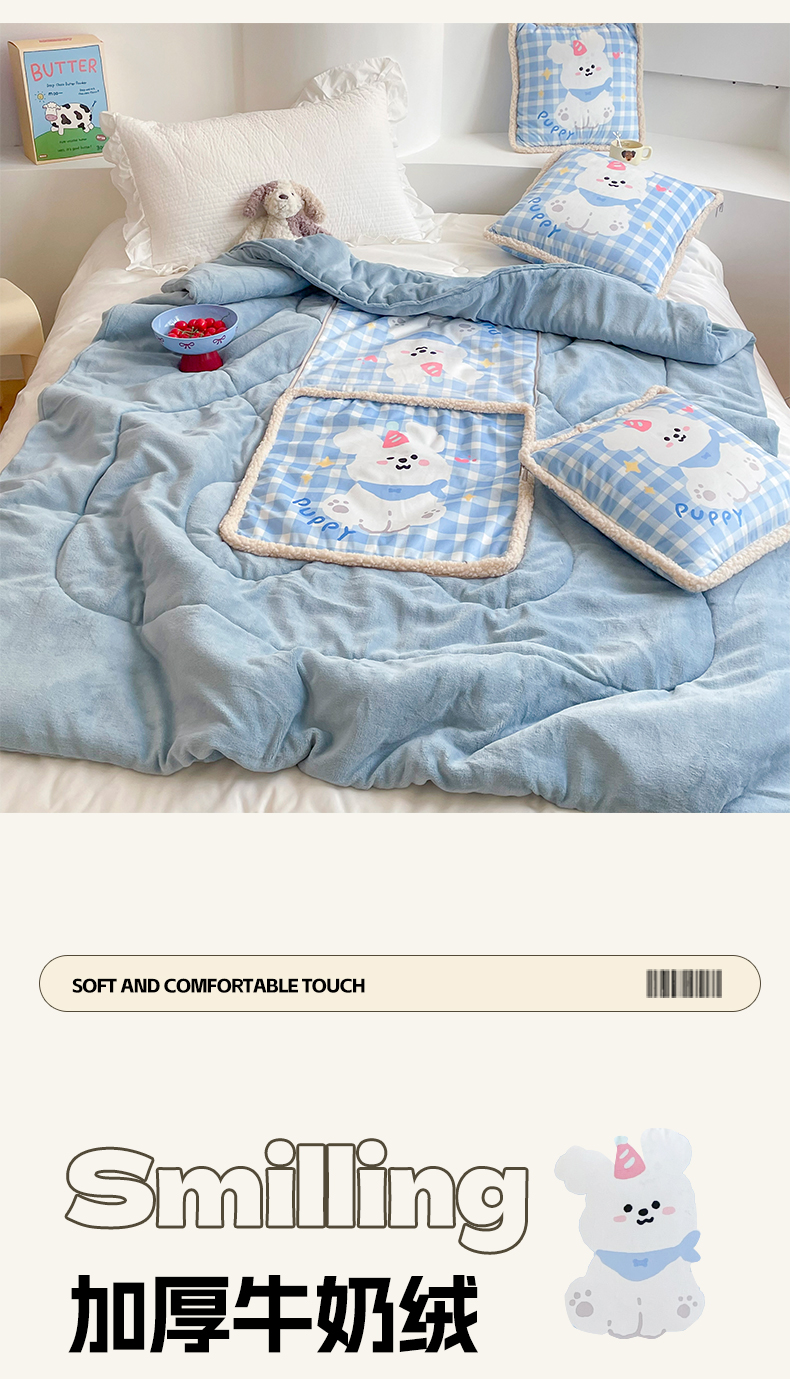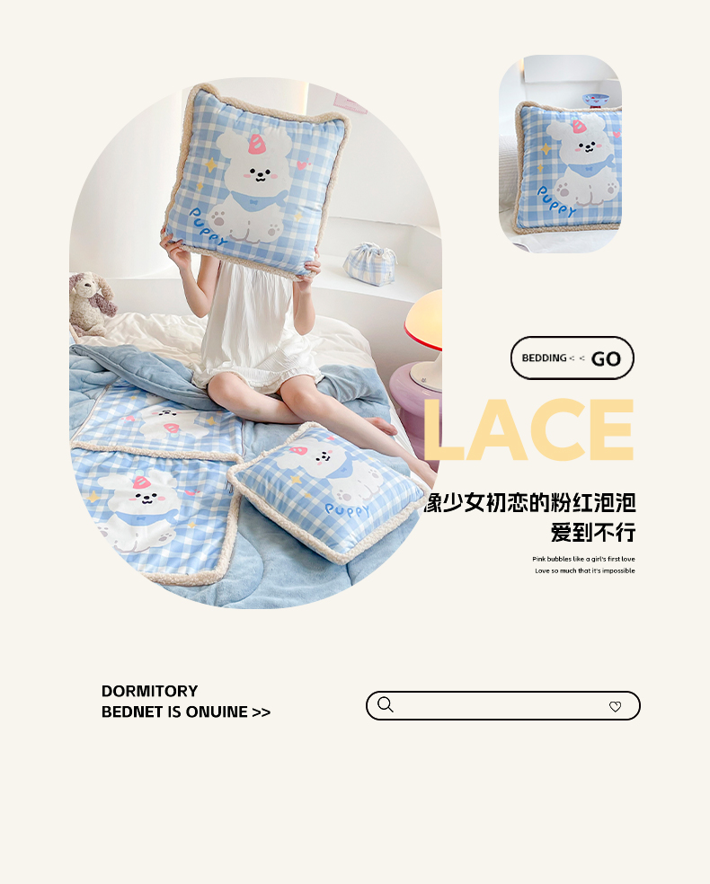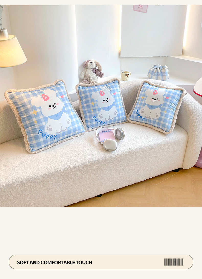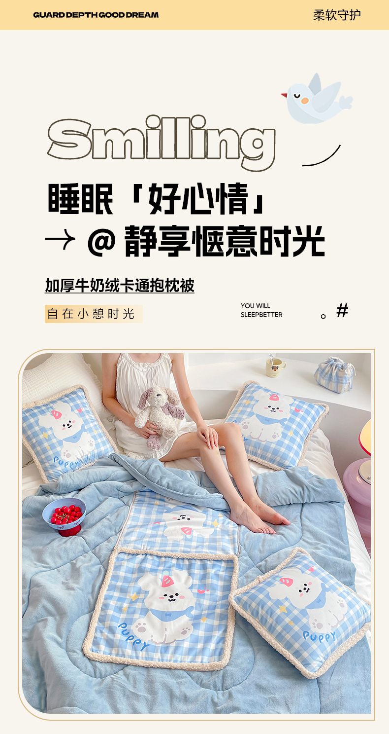 商品名称:番茄+ 2025新款羊羔毛花边绒抱枕被 快乐狗