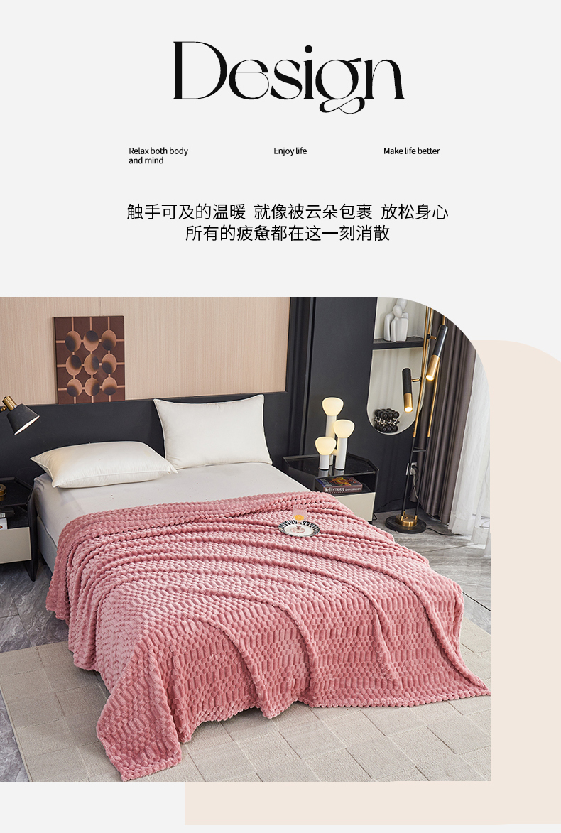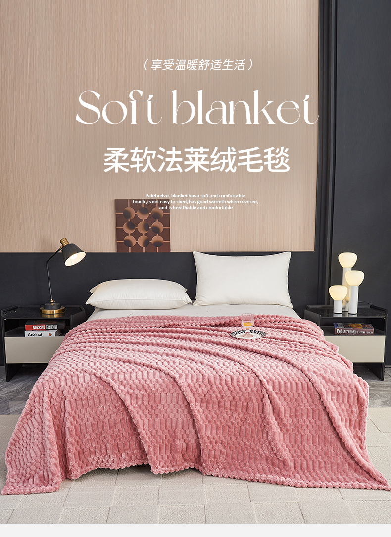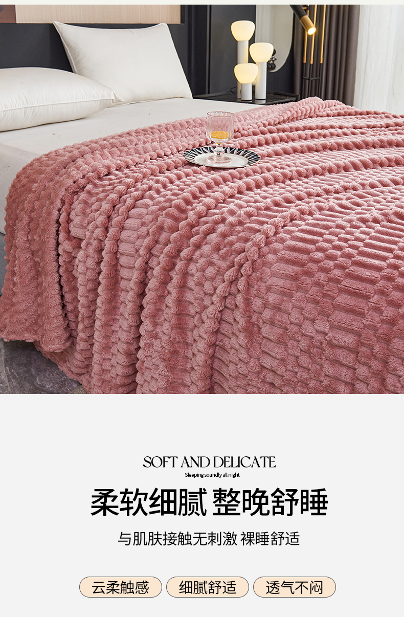 枋梢家纺 2025新款福禄抽条法兰绒牛奶绒高克重毯空调小毯子毛毯盖毯 福禄抽条毛毯-粉色