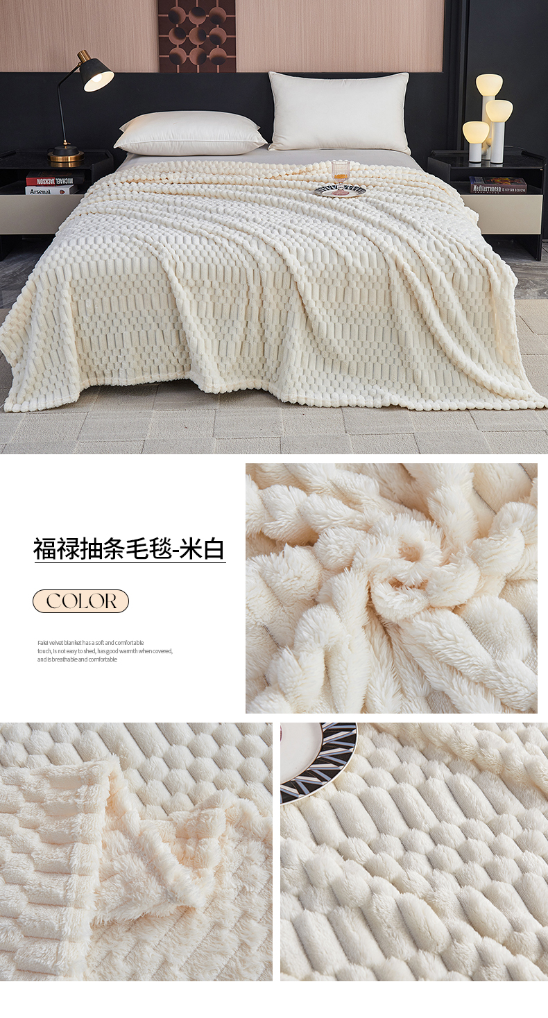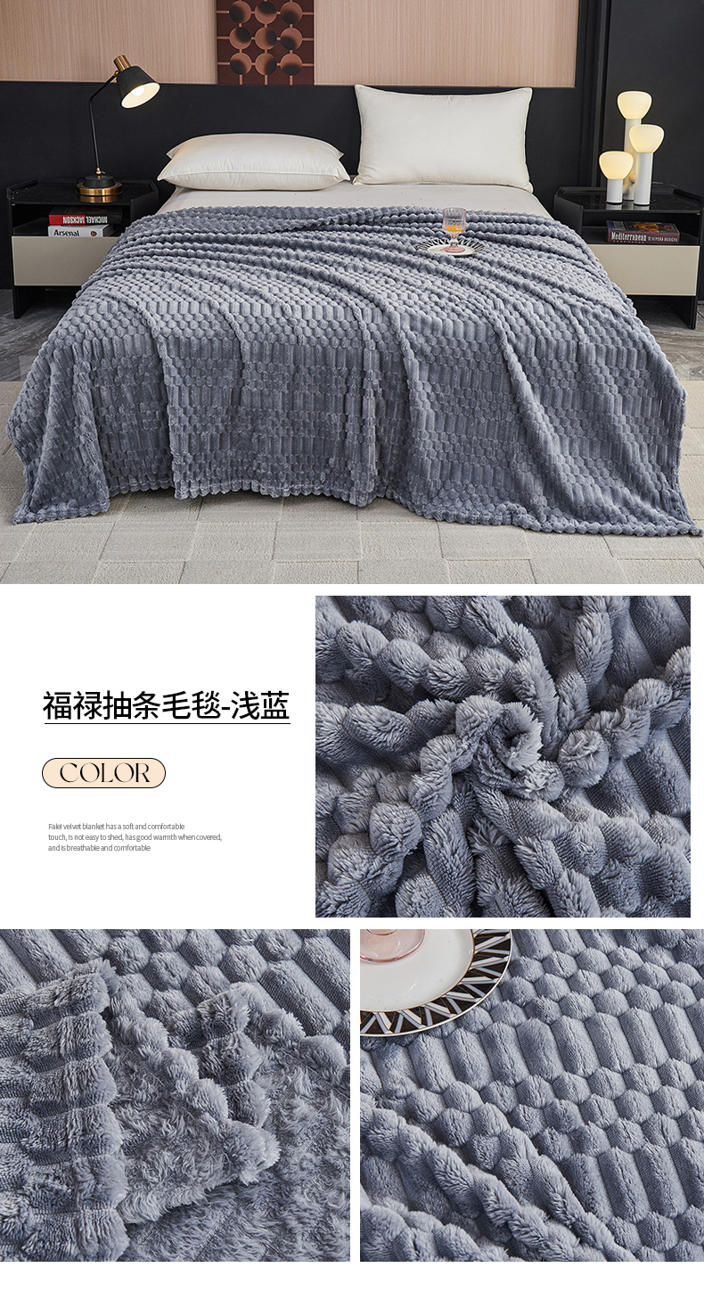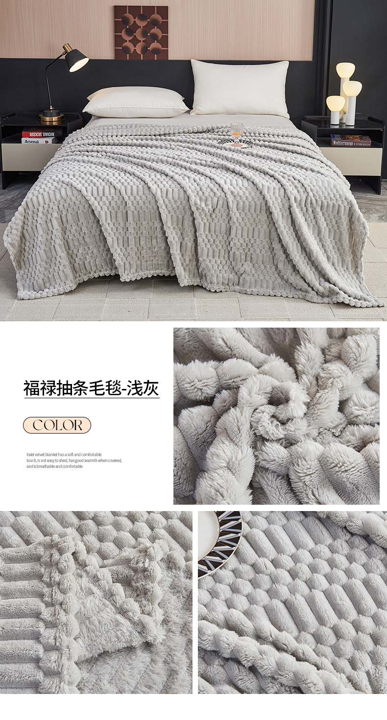 枋梢家纺 2025新款福禄抽条法兰绒牛奶绒高克重毯空调小毯子毛毯盖毯 组合图(仅参考)