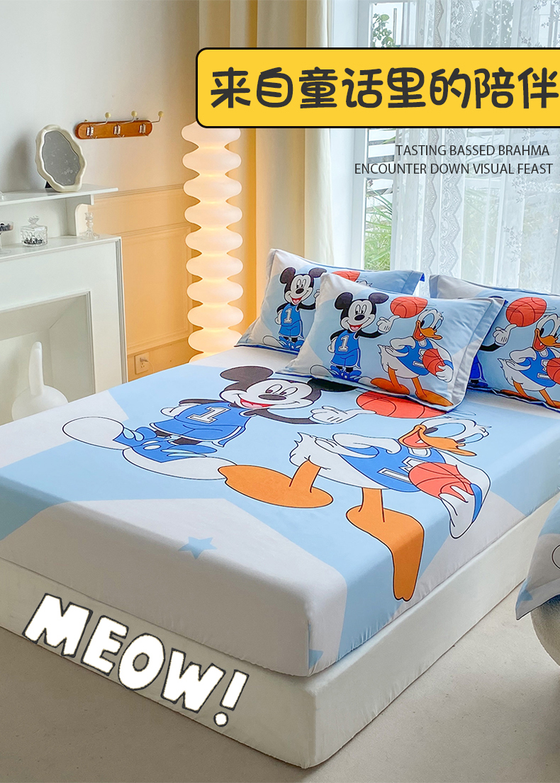 • 91家纺网 家纺一手货源 找家纺 一电 2024新款卡通床单床笠棕垫床套防尘罩席床垫保护套卡通儿童上下床床单床笠-第三批 篮球米奇