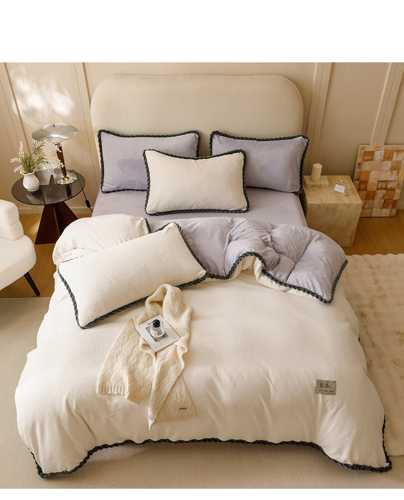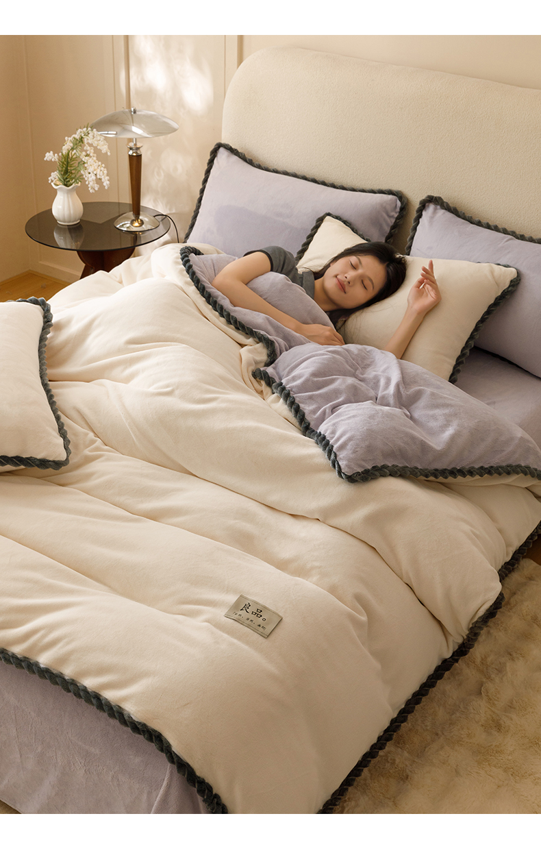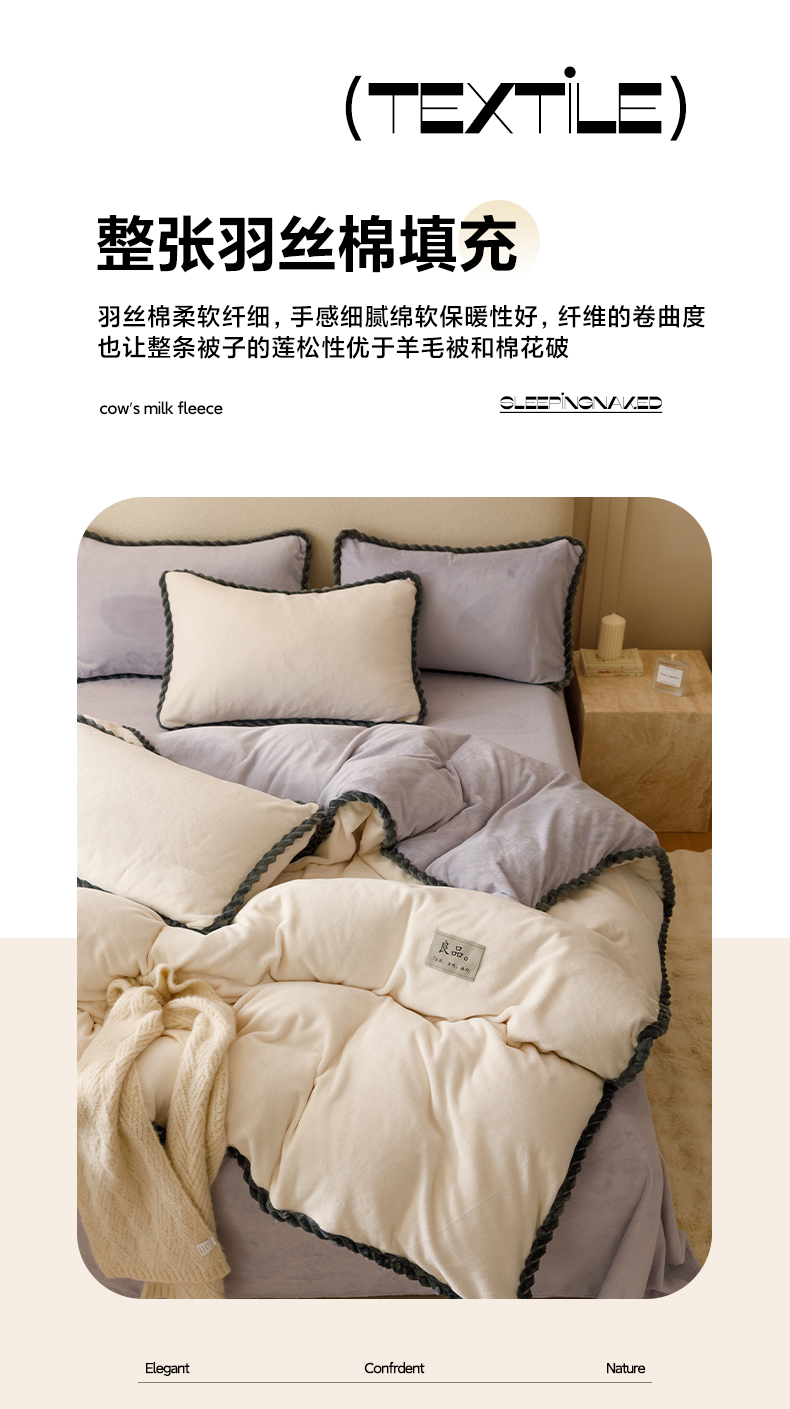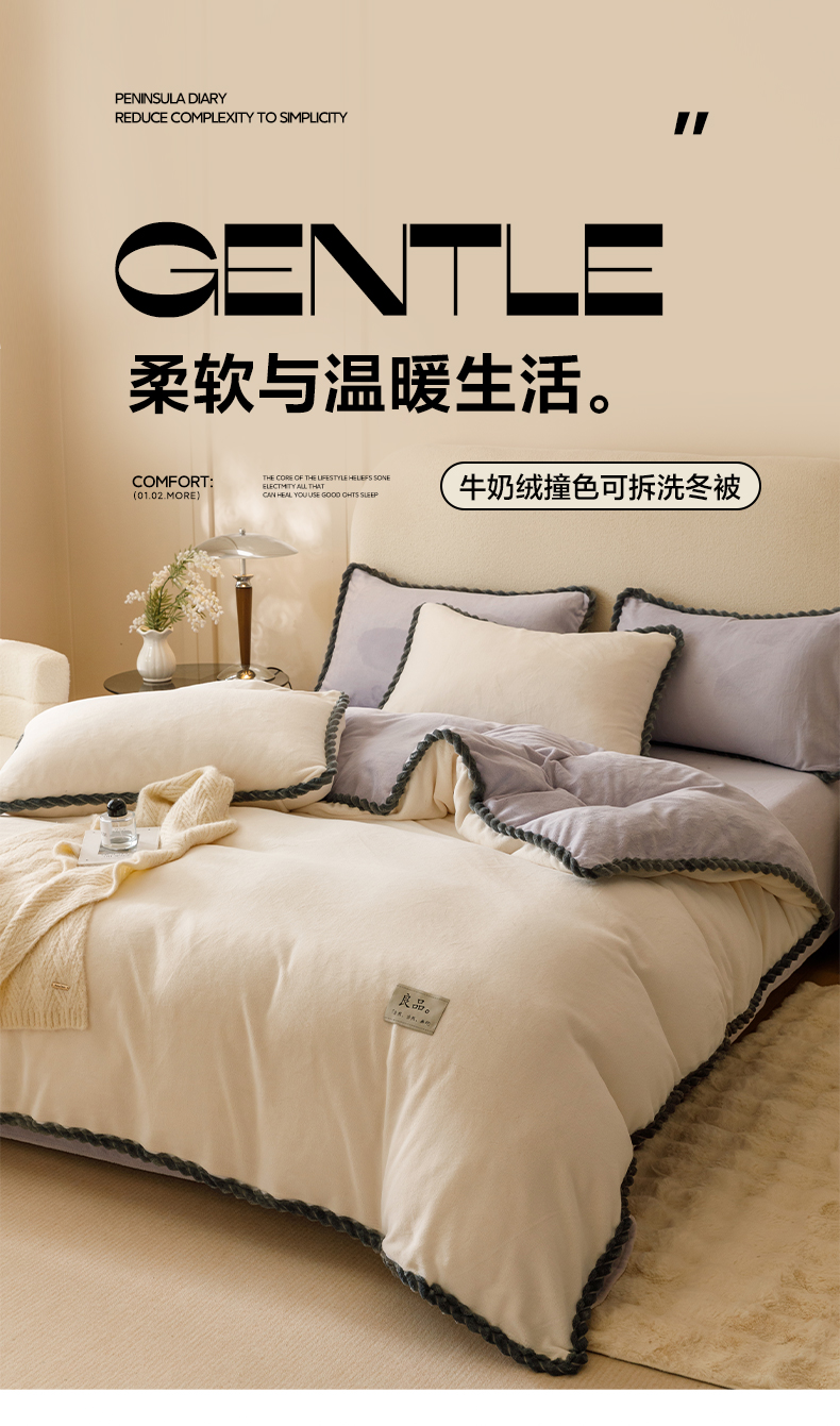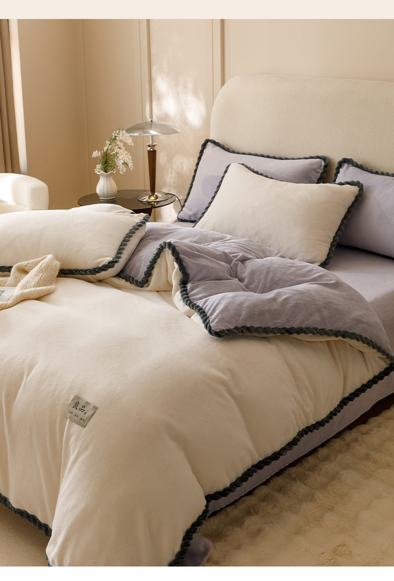 • 91家纺网 家纺一手货源 找家纺 早晨家纺 2025新款纯色双拼牛奶绒-可拆卸冬被 双拼奶白+浅紫