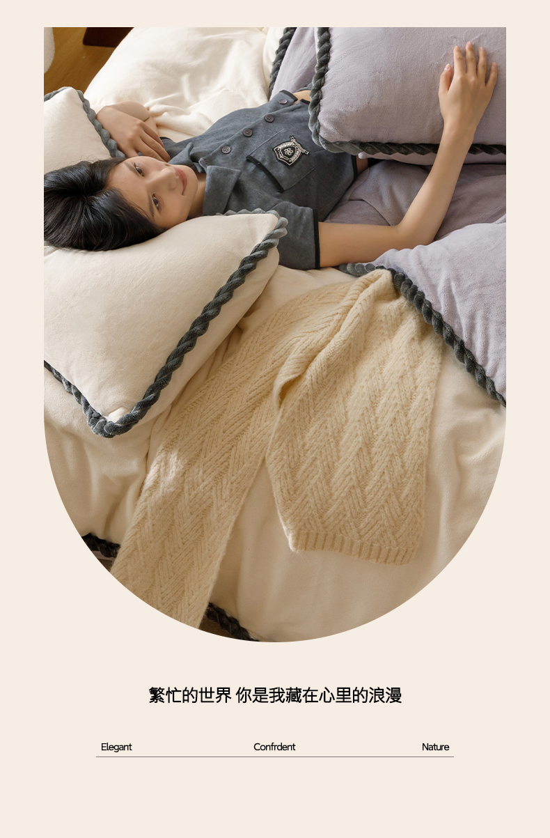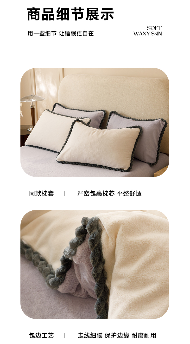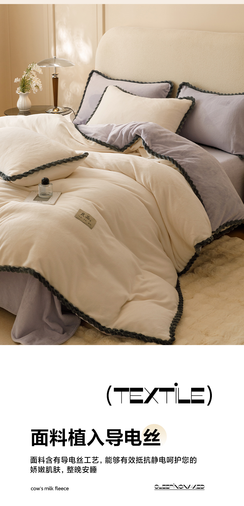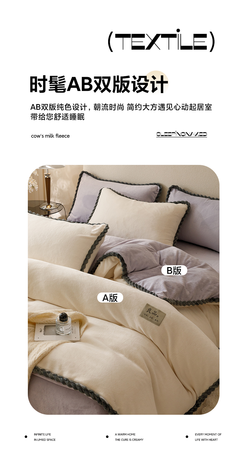• 91家纺网 家纺一手货源 找家纺 早晨家纺 2025新款纯色双拼牛奶绒-可拆卸冬被 双拼奶白+浅紫