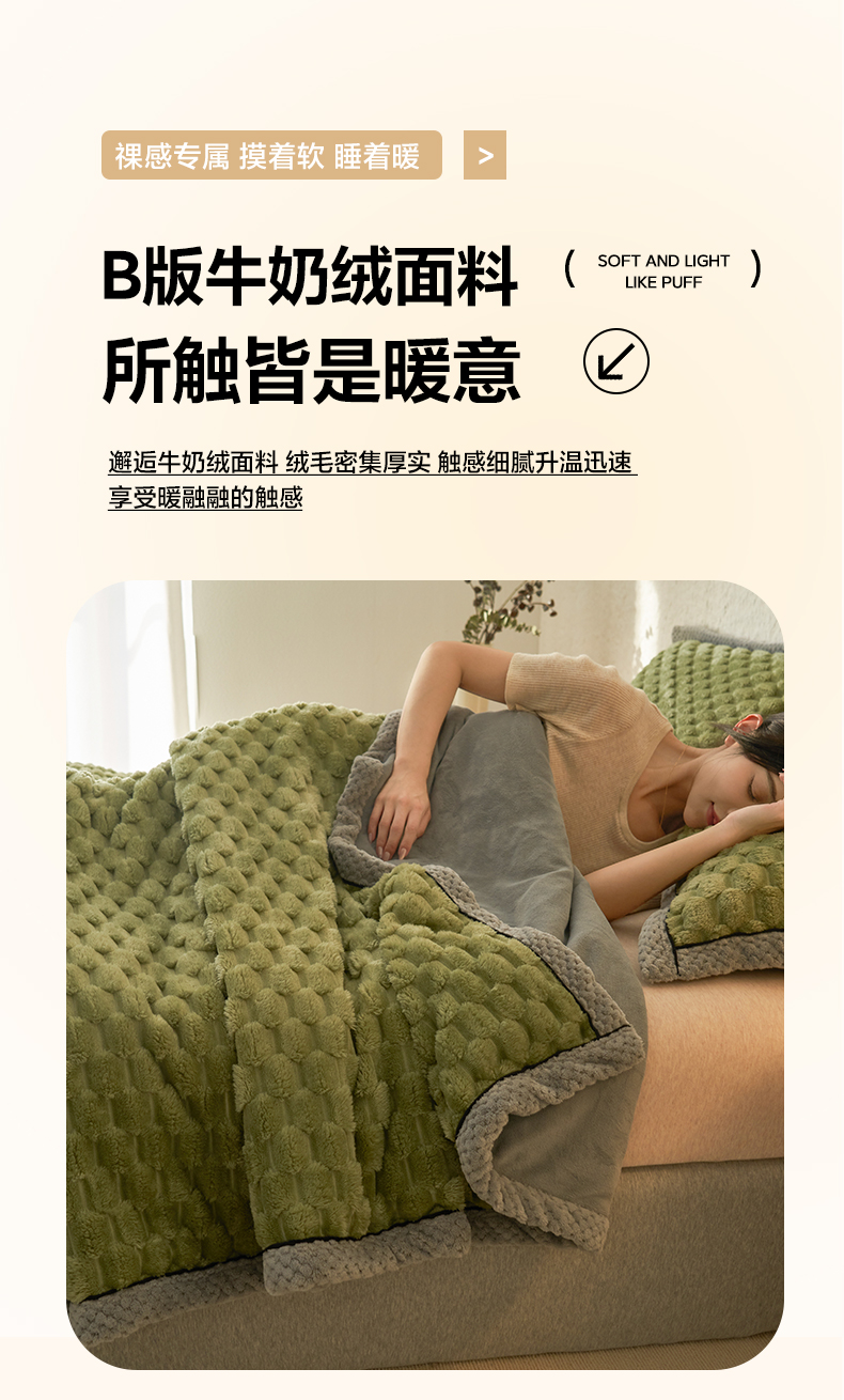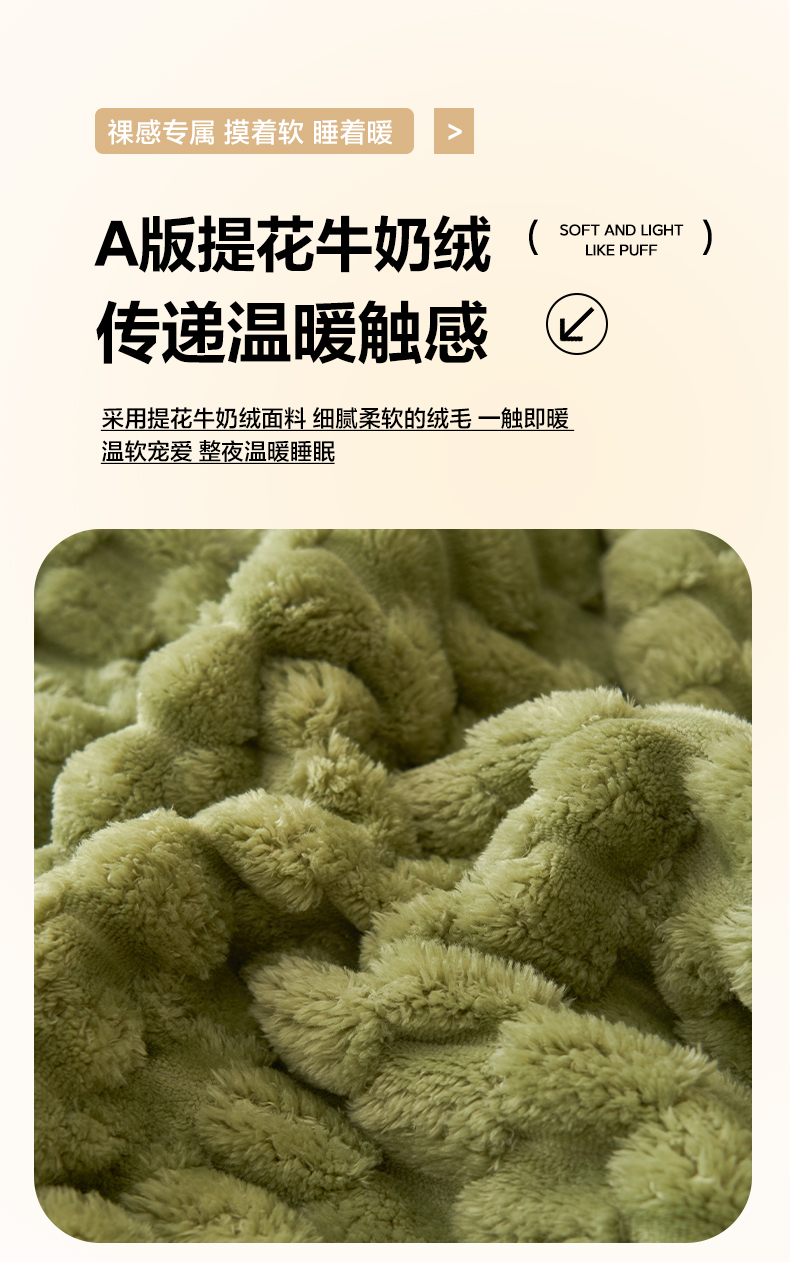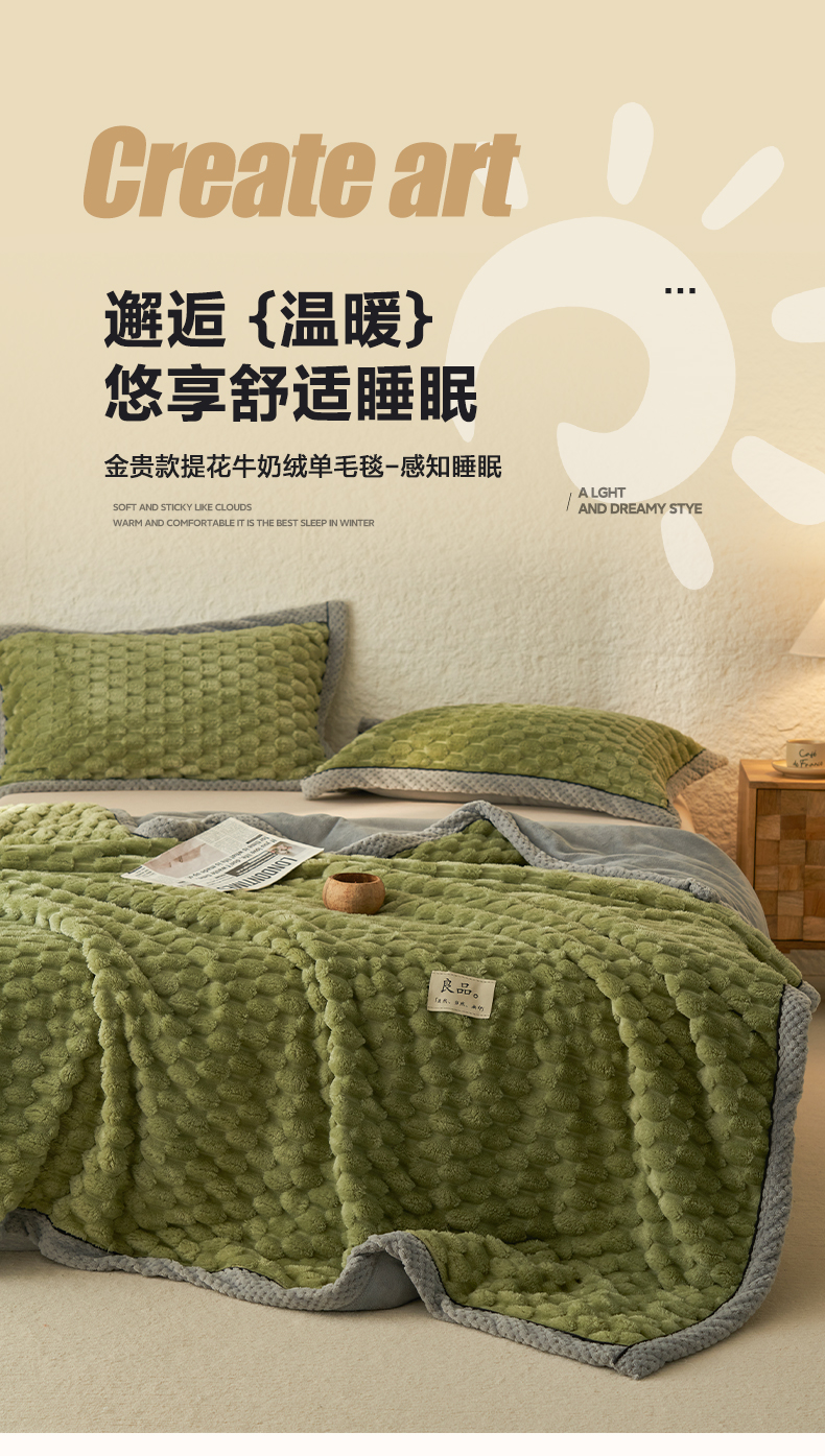 当前位置: 91家纺网 > 商品网购 > 毛毯休闲毯绒毯 > 毛毯 > 早晨家纺 2025新款金贵款-提花双层毛毯【拉链款】 金贵-草绿