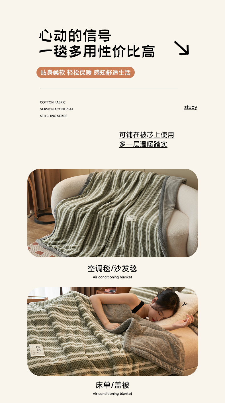 当前位置: 91家纺网 > 商品网购 > 毛毯休闲毯绒毯 > 毛毯 > 早晨家纺 2025新款豆豆绒-无印双层毛毯【拉链款】 豆豆绒-绿条