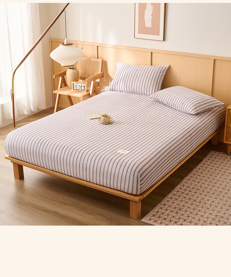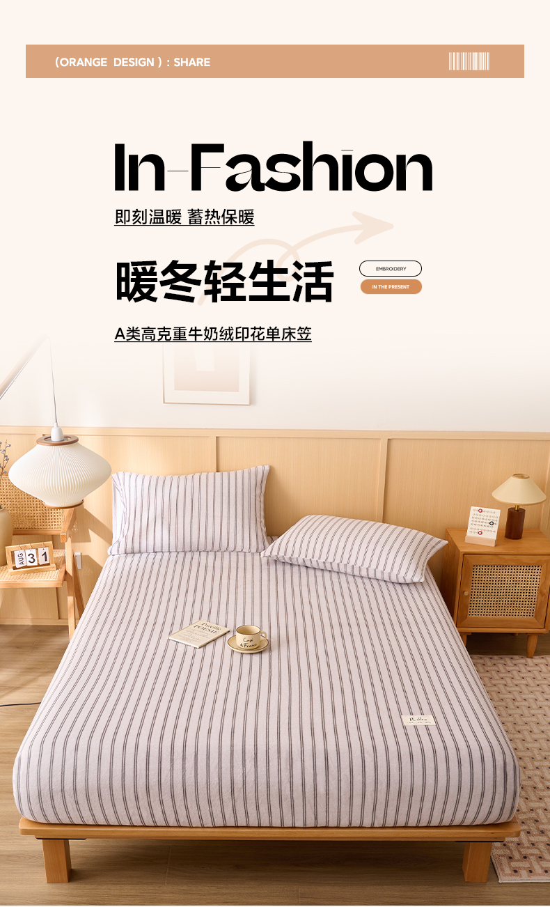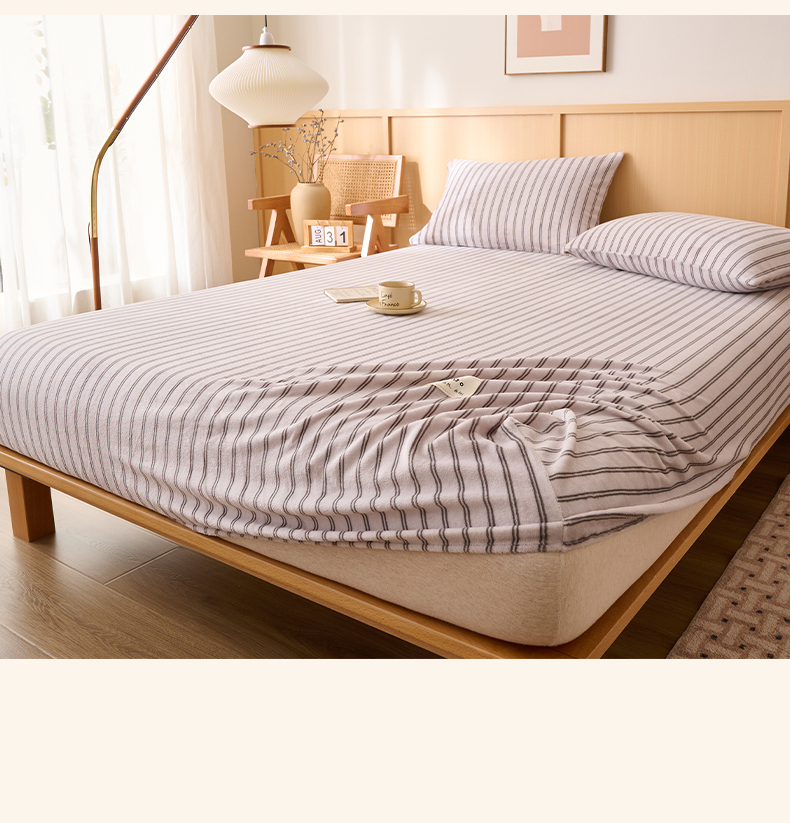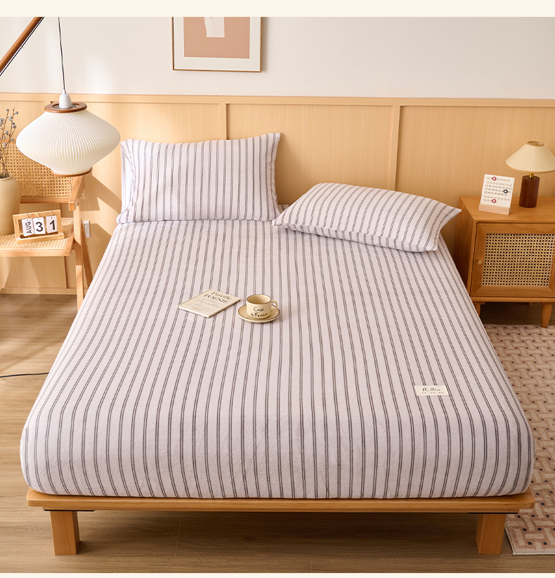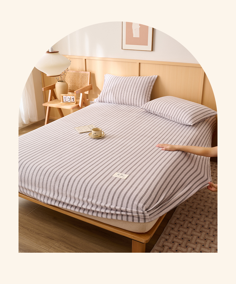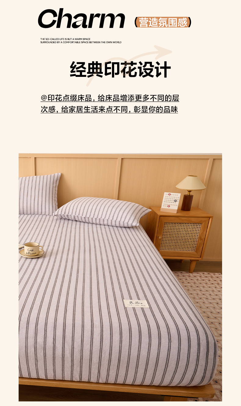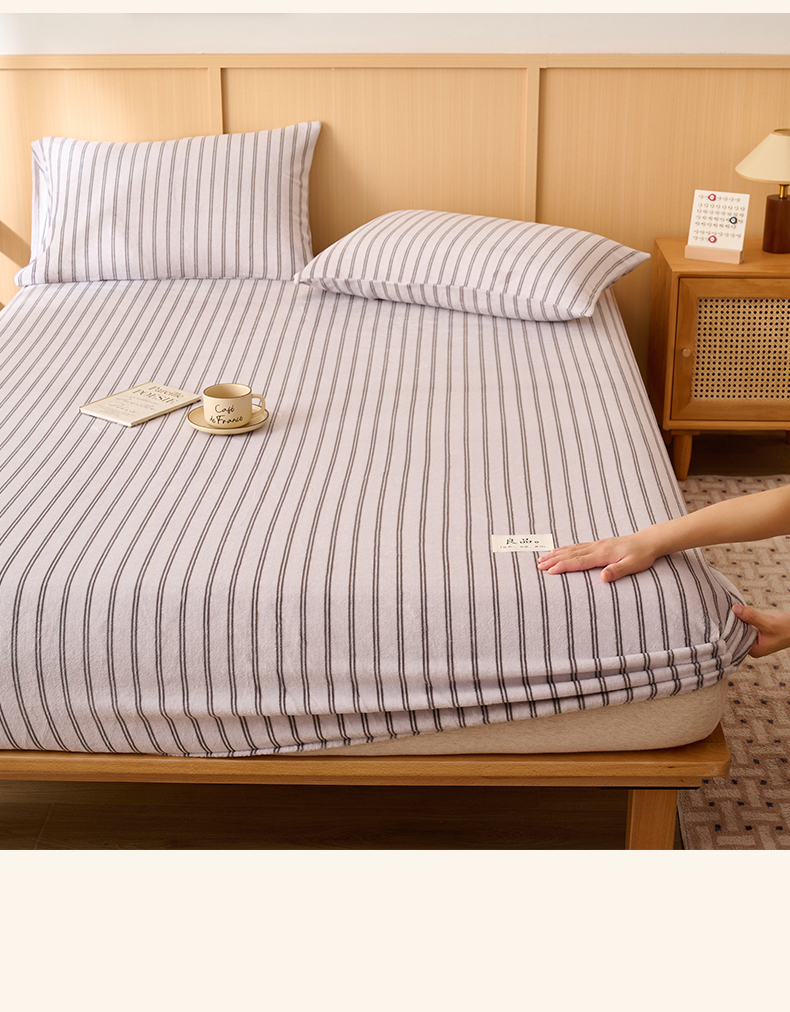 • 91家纺网 家纺一手货源 找家纺 早晨家纺 2025新款野牧款高克重牛奶绒印花单床笠 野牧-竖条白