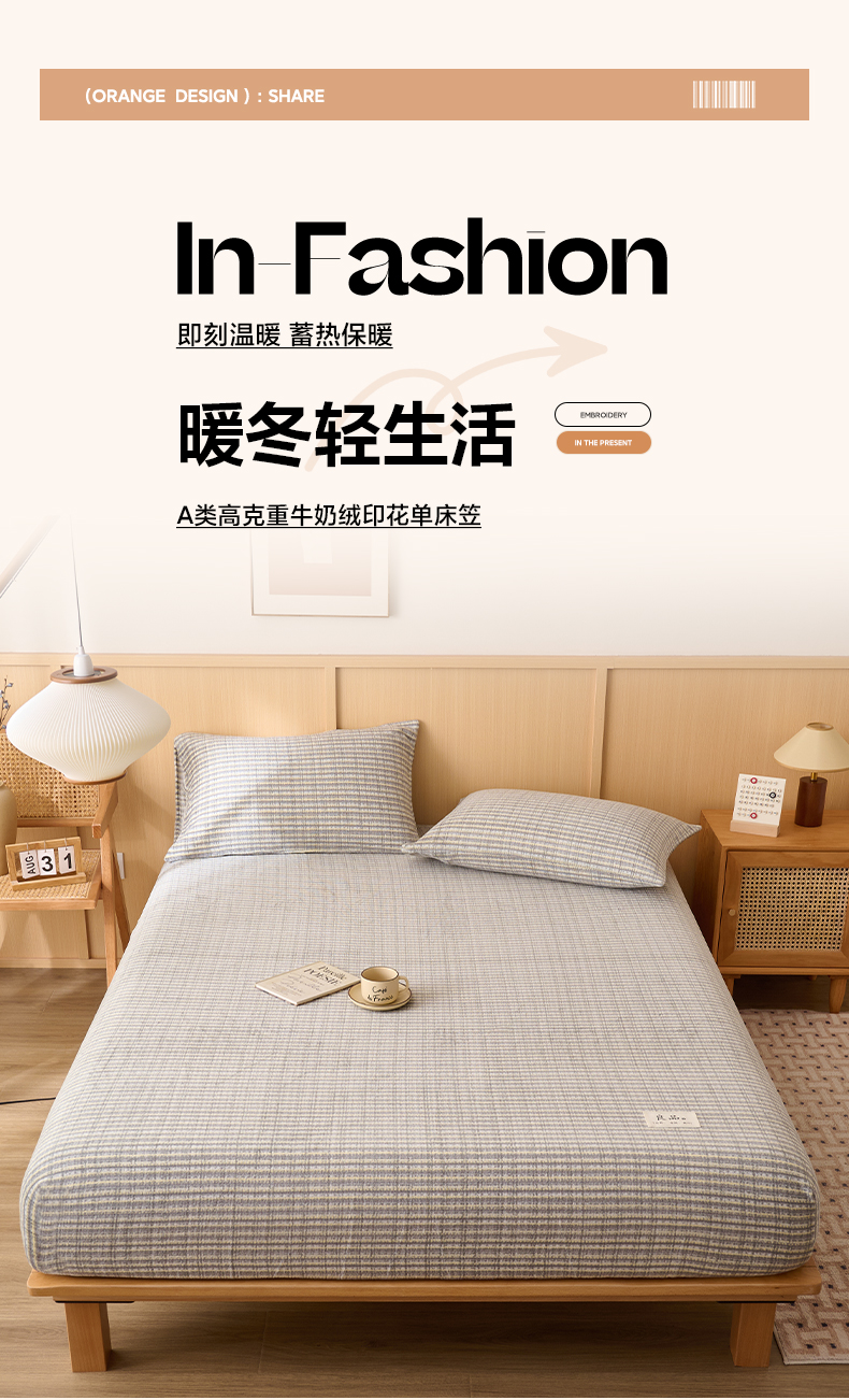 • 91家纺网 家纺一手货源 找家纺 早晨家纺 2025新款野牧款高克重牛奶绒印花单床笠 野牧-香风灰
