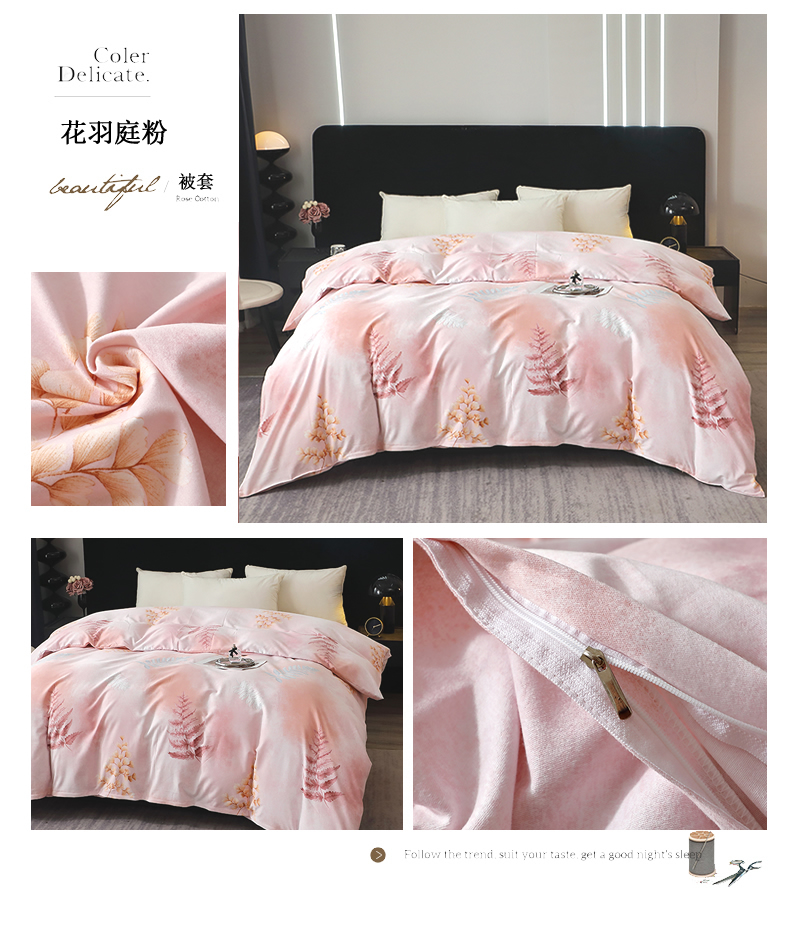 • 91家纺网 家纺一手货源 找家纺 晶缦家纺 2025叶语系·纯棉活性全棉磨毛单被套单品被套被套单件 兔宝贝粉