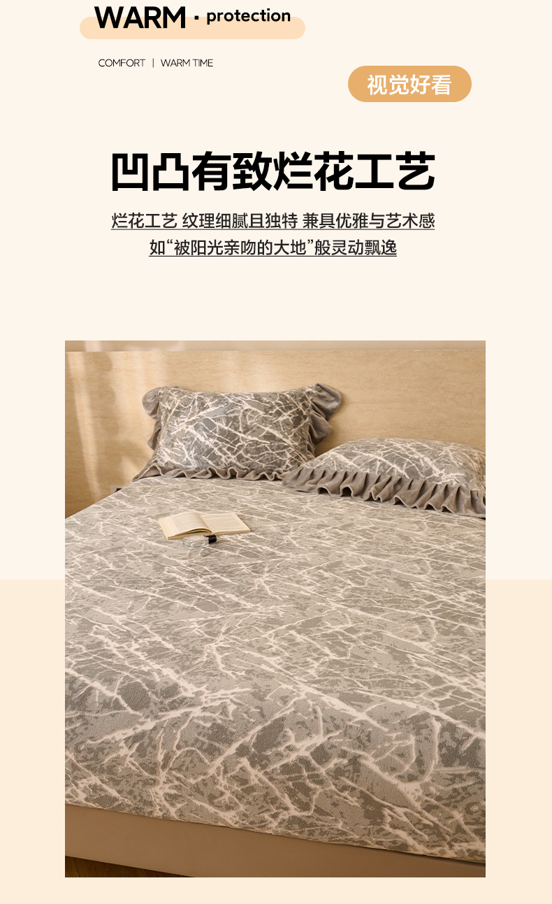 • 91家纺网 家纺一手货源 找家纺 早晨家纺 2025新款高克重牛奶绒烂花单床笠 羽眠