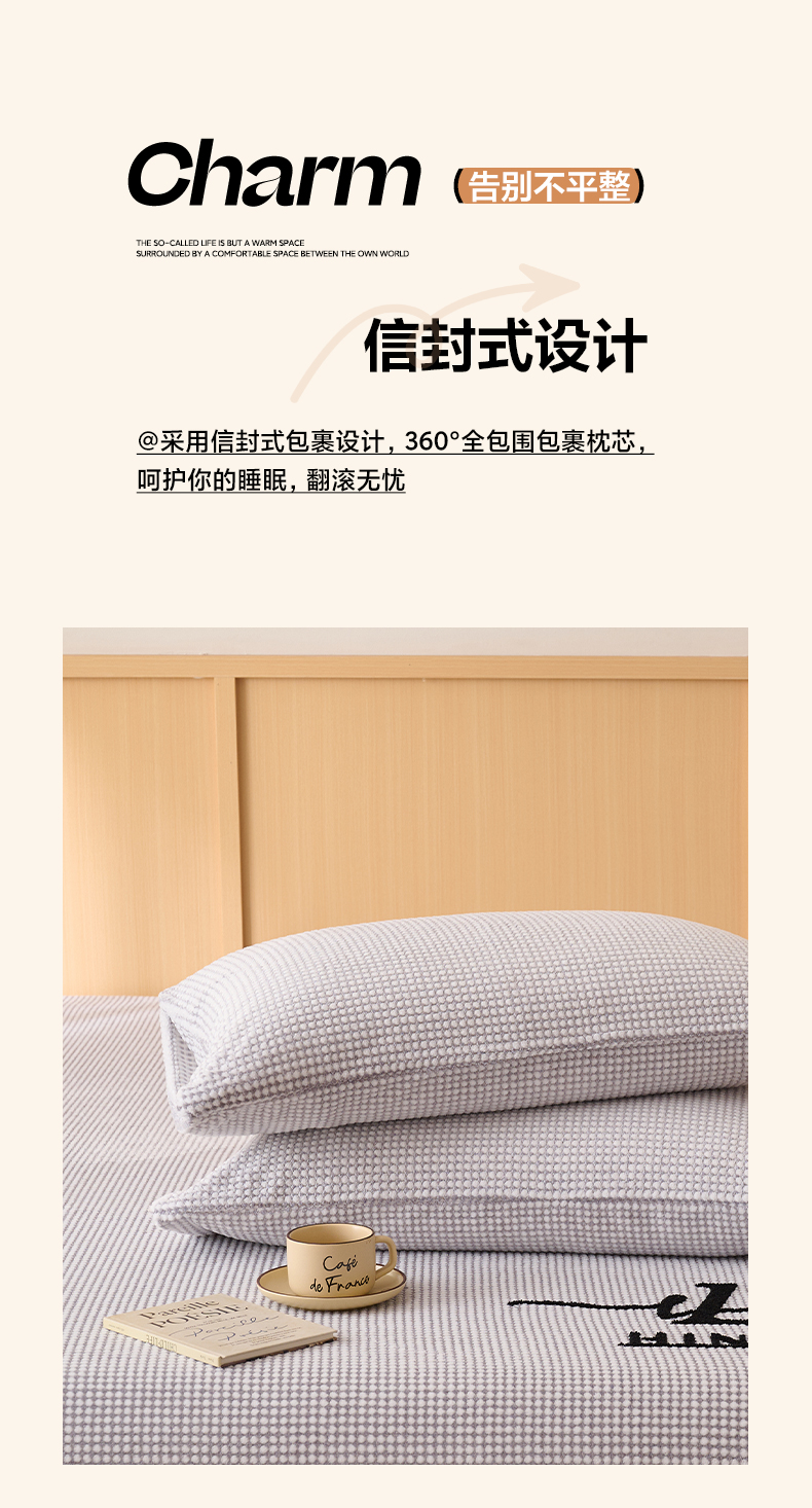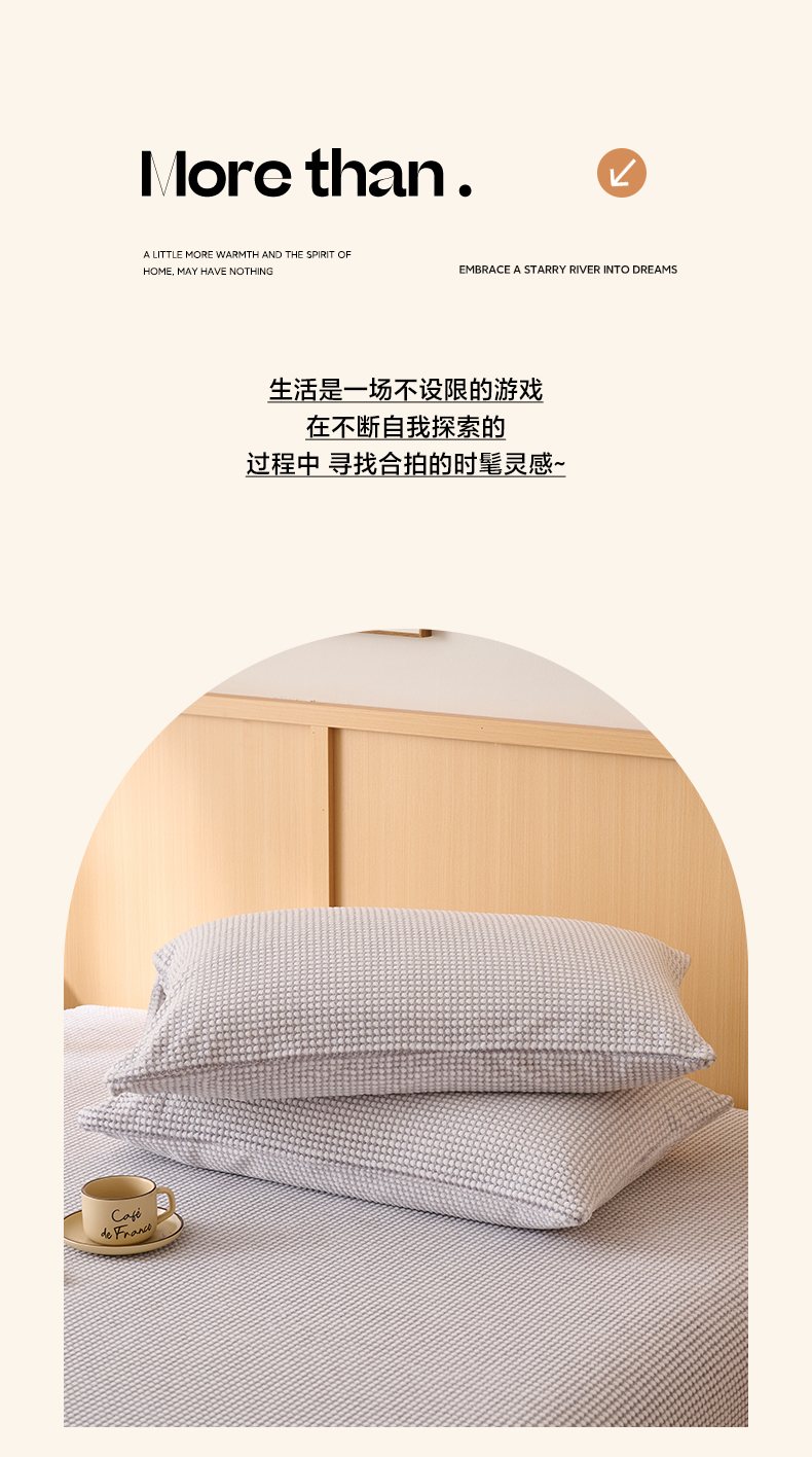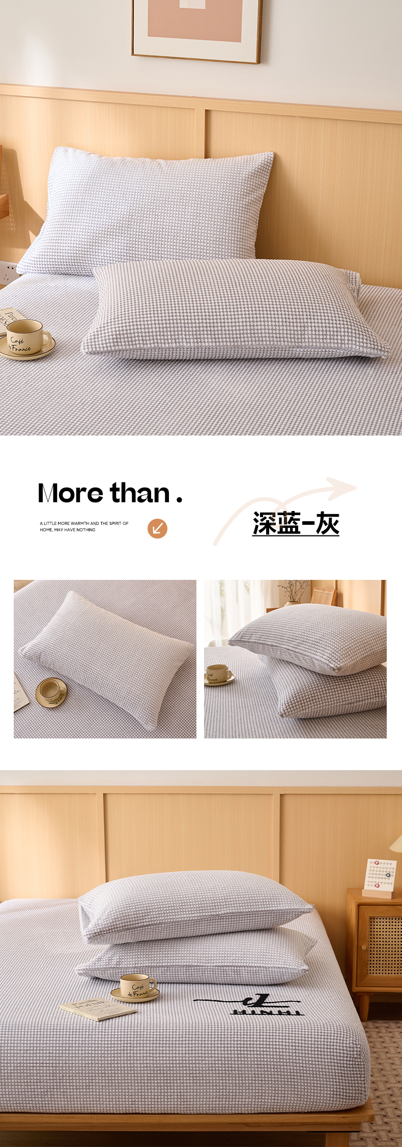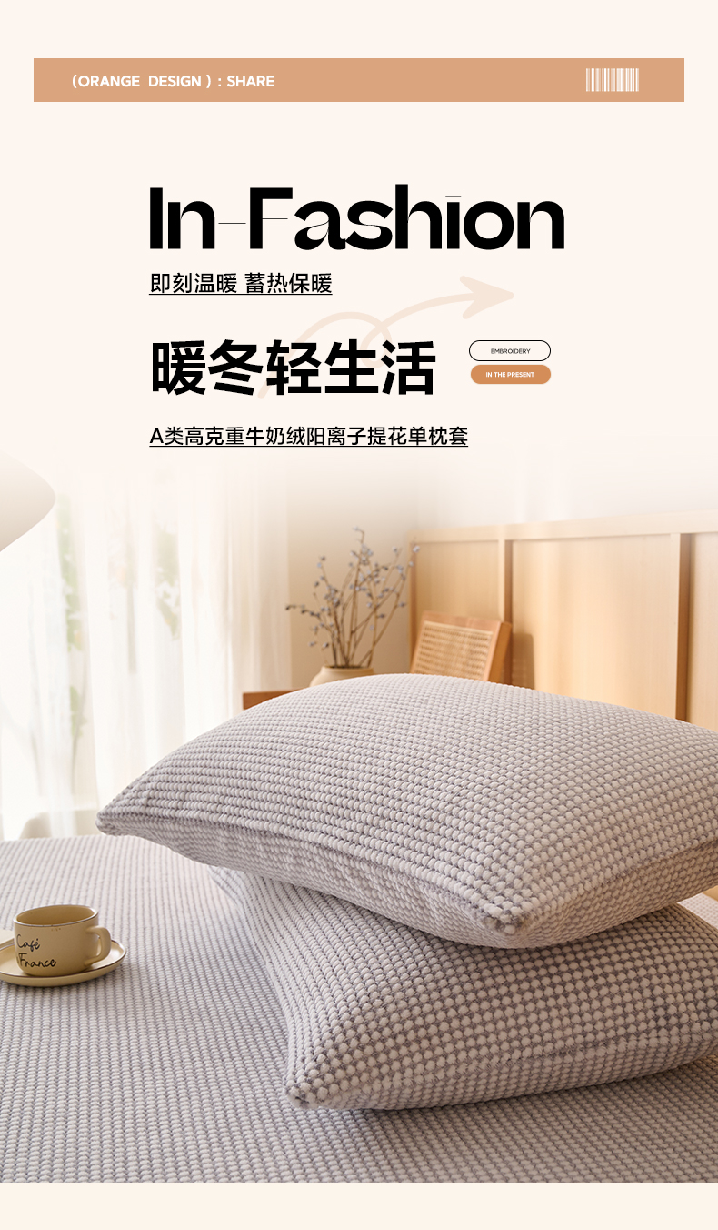 商品名称:早晨家纺 2025新款深蓝款高克重牛奶绒阳离子提花单枕套 深蓝-灰