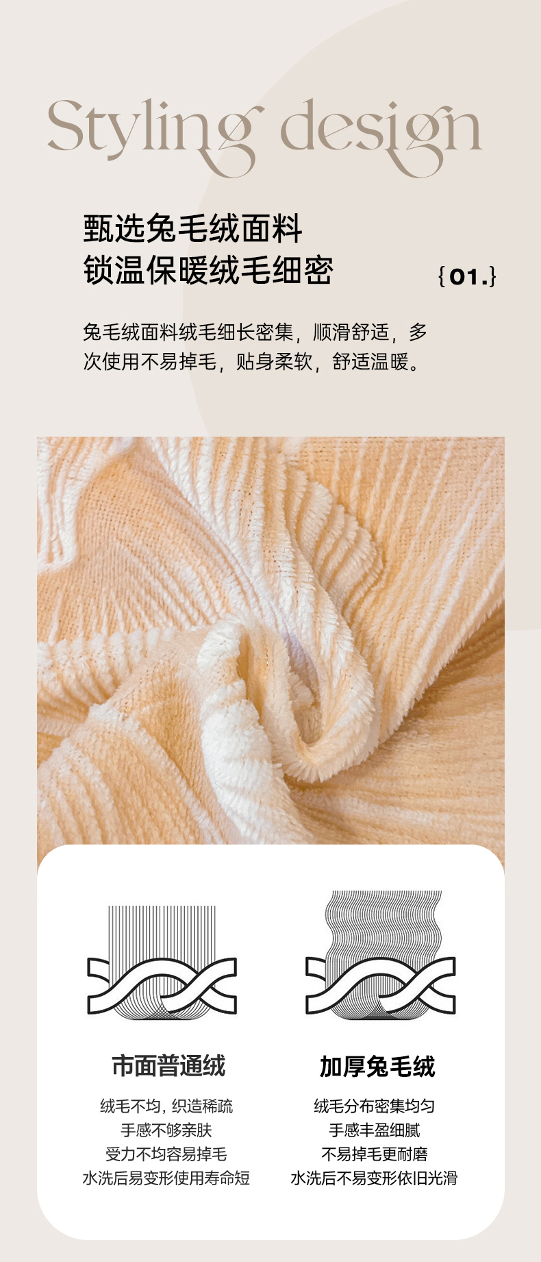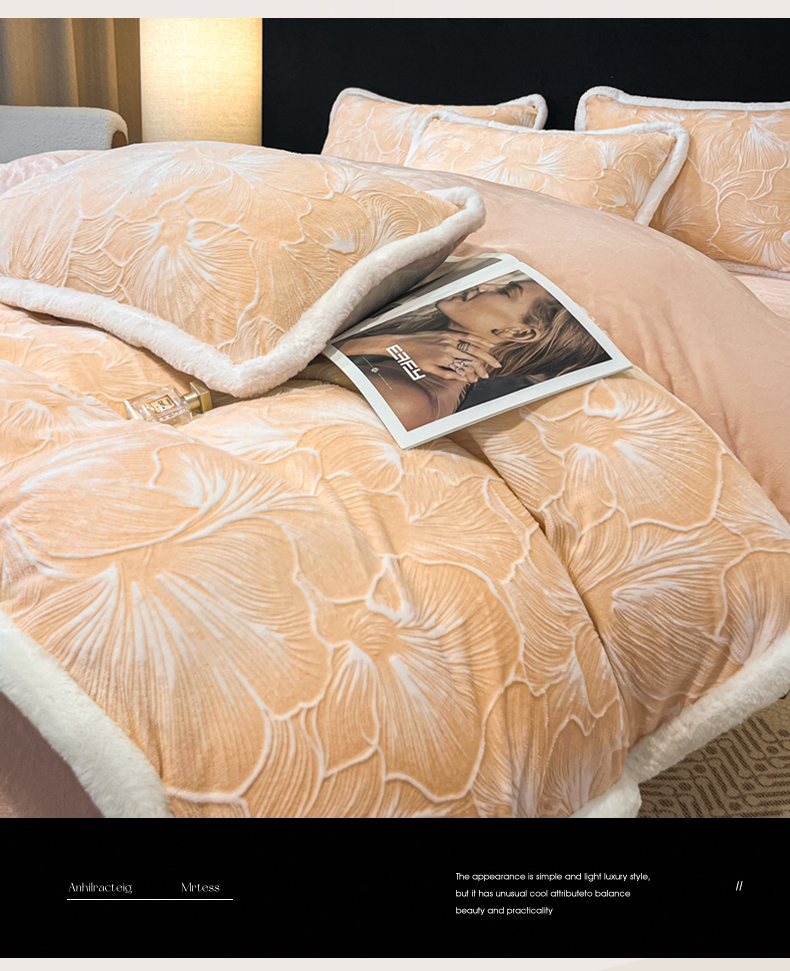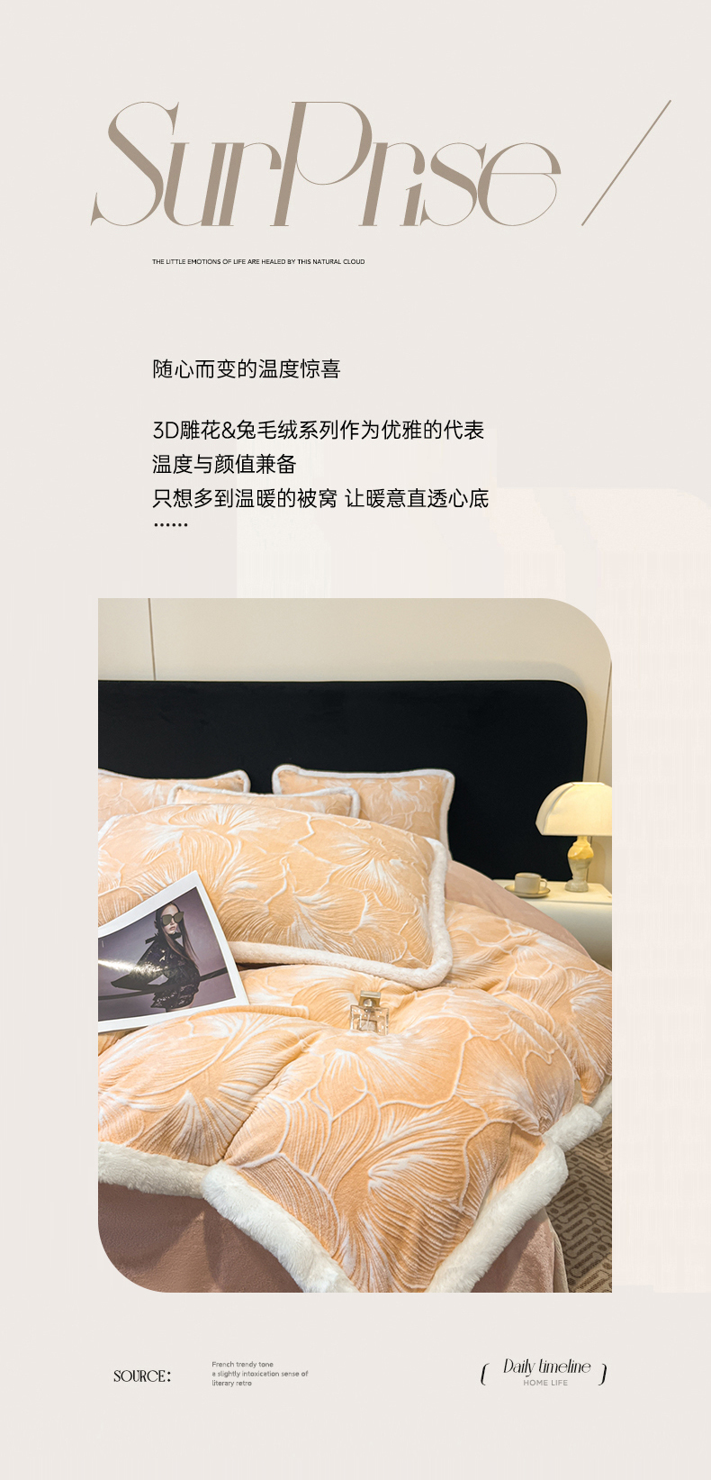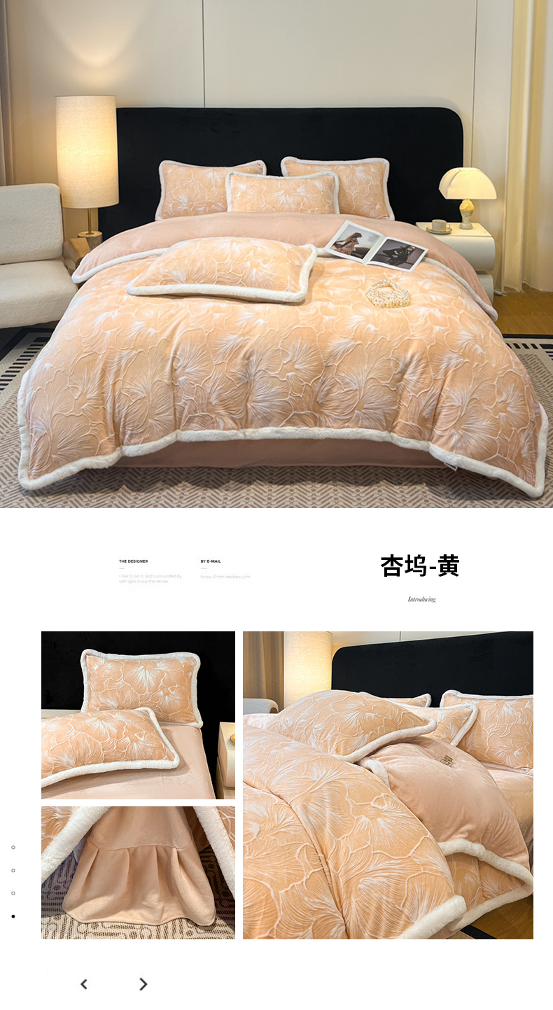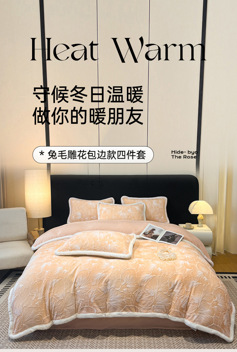 诺梵家纺 2025新款兔毛绒包边 雕花绒四件套 杏坞-黄