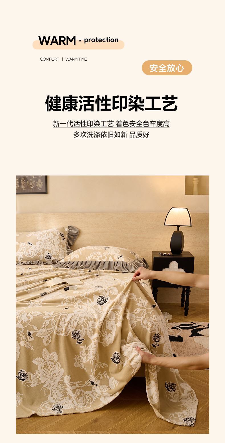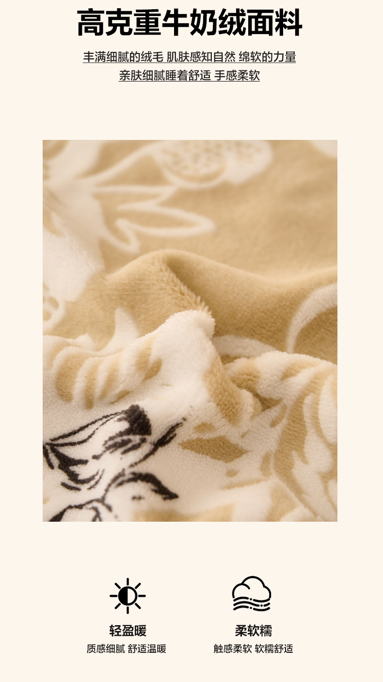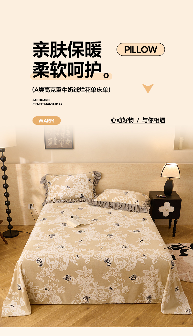 • 91家纺网 家纺一手货源 找家纺 早晨家纺 2025新款高克重牛奶绒烂花单品床单 雅庭花叙