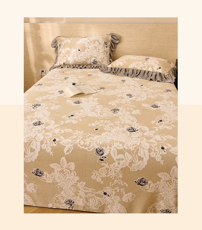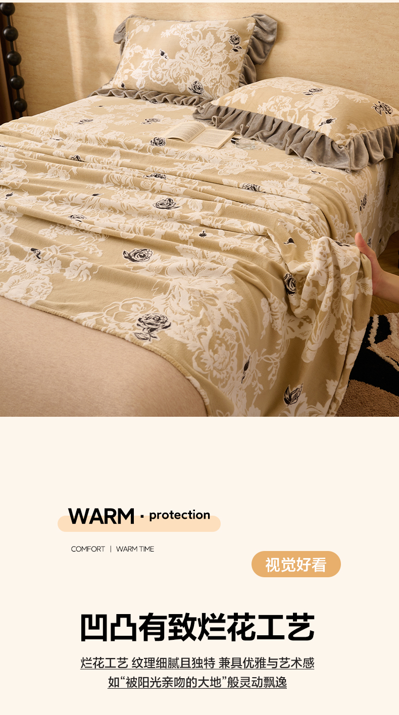 早晨家纺 2025新款高克重牛奶绒烂花单品床单 雅庭花叙