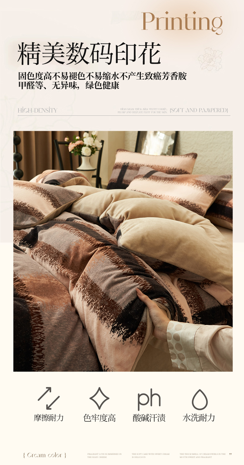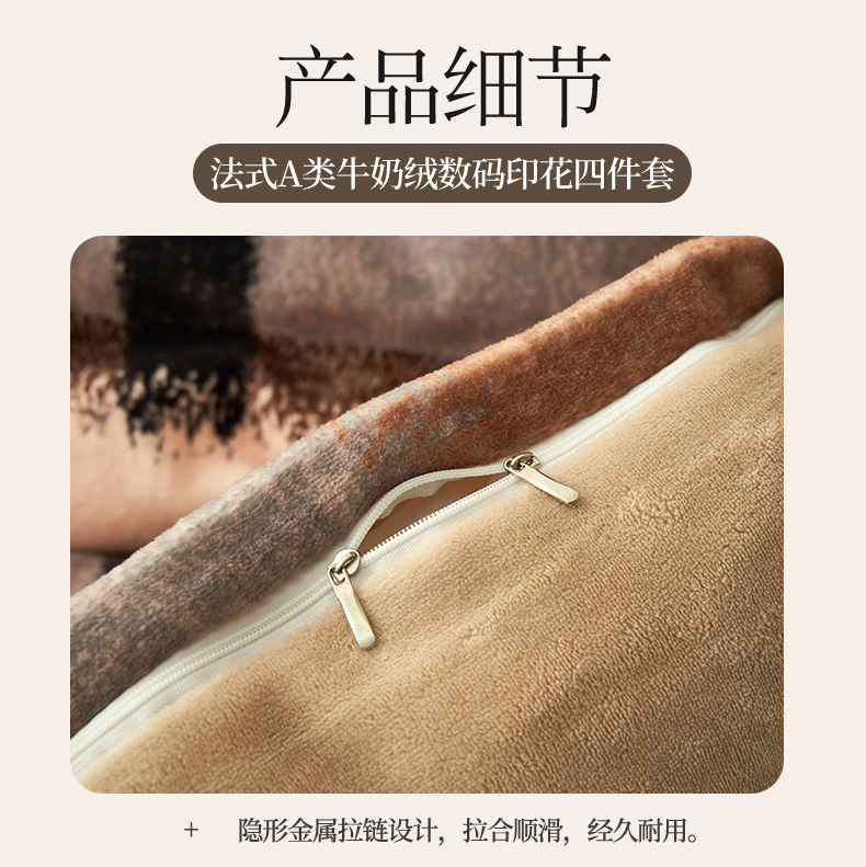 金鹰 2025新款A类数码印花牛奶绒四件套绒套件 漫意