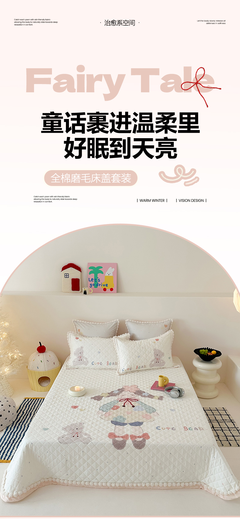 当前位置: 91家纺网 > 商品网购 > 床品套件 > 四件套 > 普通磨毛四件套 > (总)漫调家纺 2025新款全棉磨毛大版卡通床盖套件
