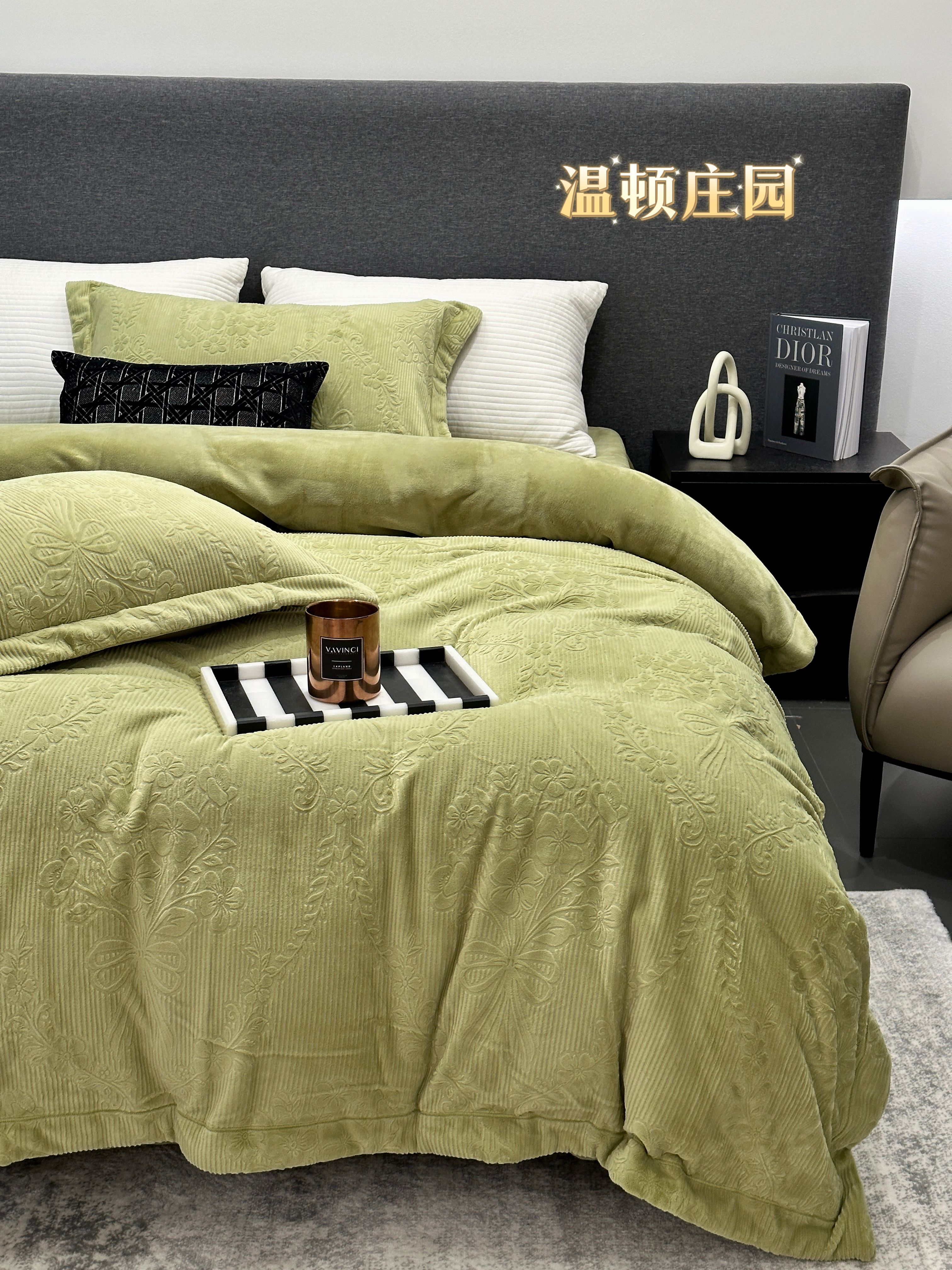 商品名称:JUICY 橘滋家纺 2025新款高级简约立体提花浮雕牛奶绒系列四件套 北欧的诗-灰