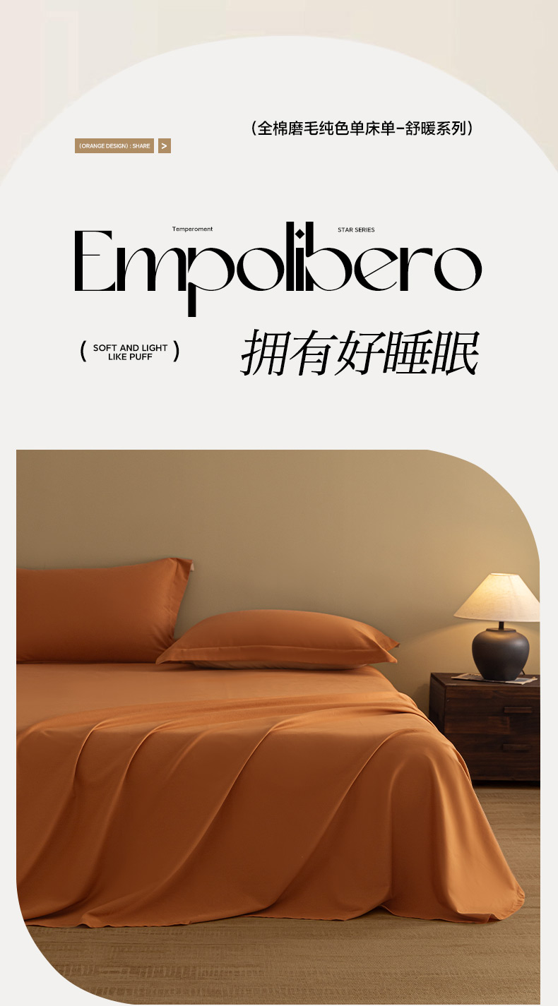 商品名称:秀色家纺 2025冬季微绒感精梳全棉加厚碳素轻磨毛纯棉床单三件套被单单件A类 舒暖-晚霞橙