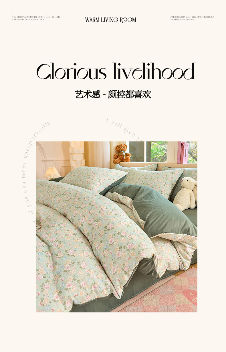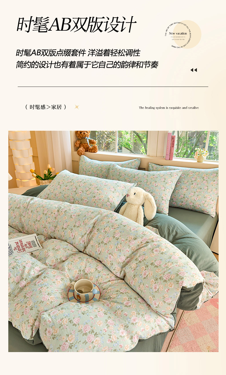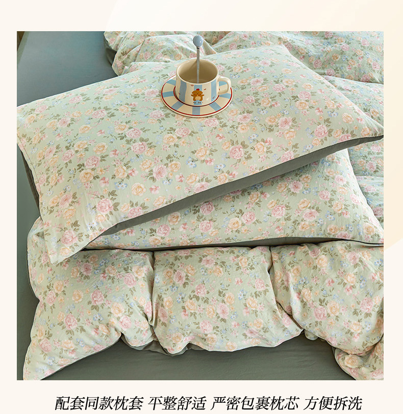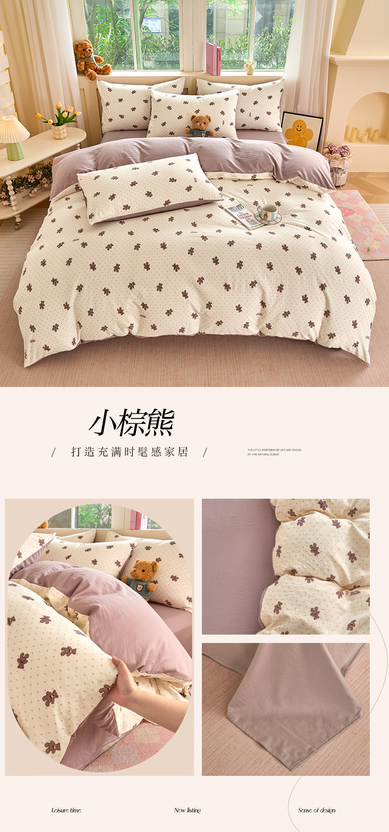 (总)卢赛尔 2025新款水洗珍珠印花四件套,暗香,蝴蝶结紫,南粉-灰,千姿,蔷薇-粉,秋草-灰,山茶-绿,格子-绿,甜心草莓,相思粉,小棕熊