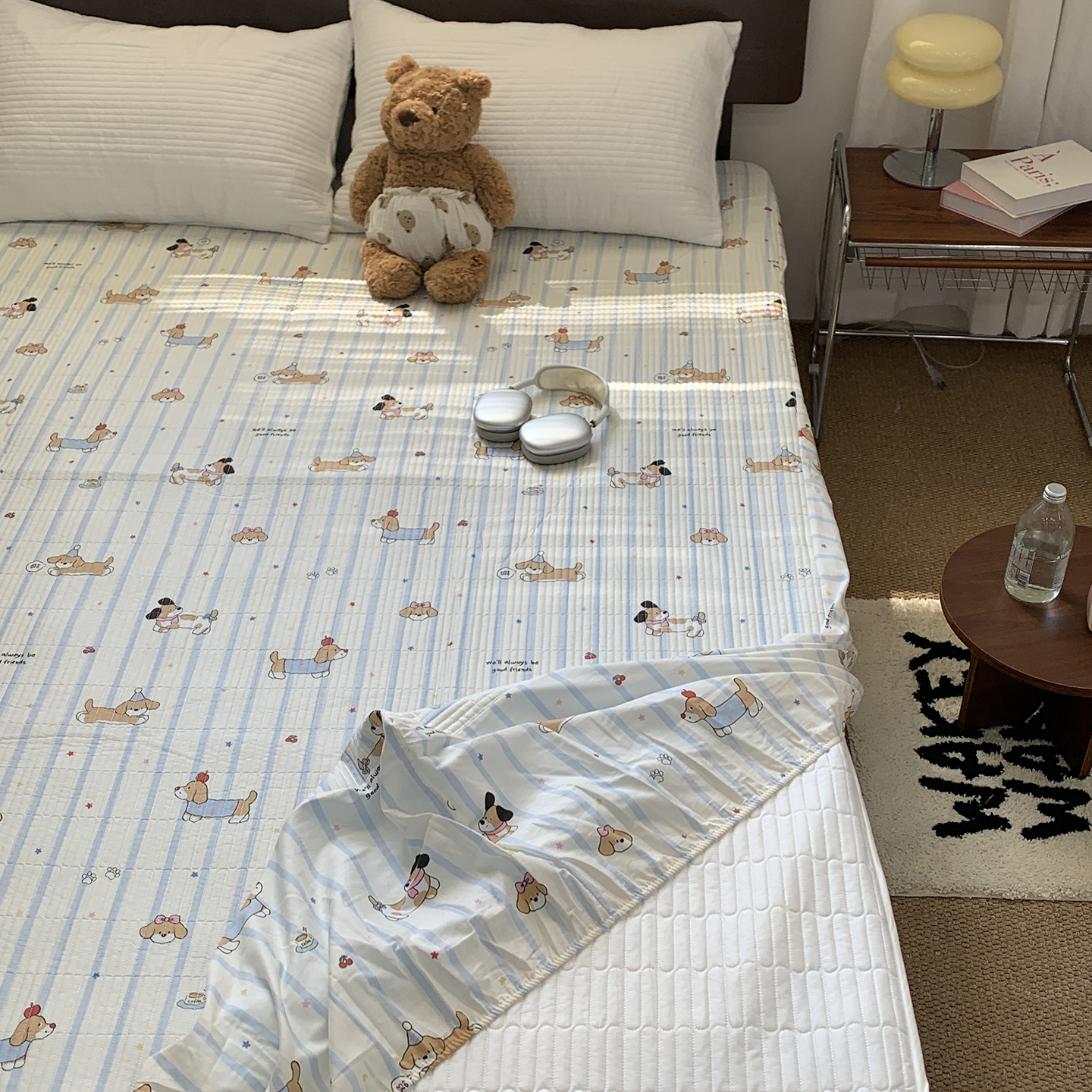 秘密基地 2025新款全棉单品床笠系列 薄荷小狗