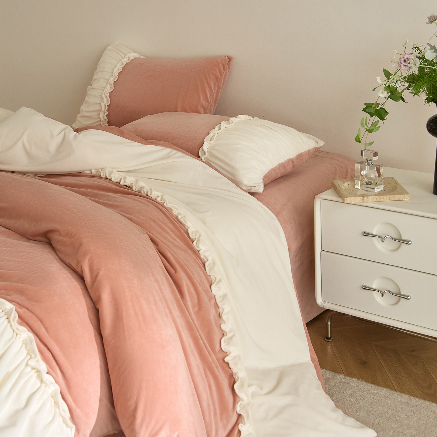 (总)ONE TWO ONE 121 【会员-20】【控价商品】【提供买家秀】 2026新款韩版花边公主风100s长绒棉全棉床上用,雅韵繁花