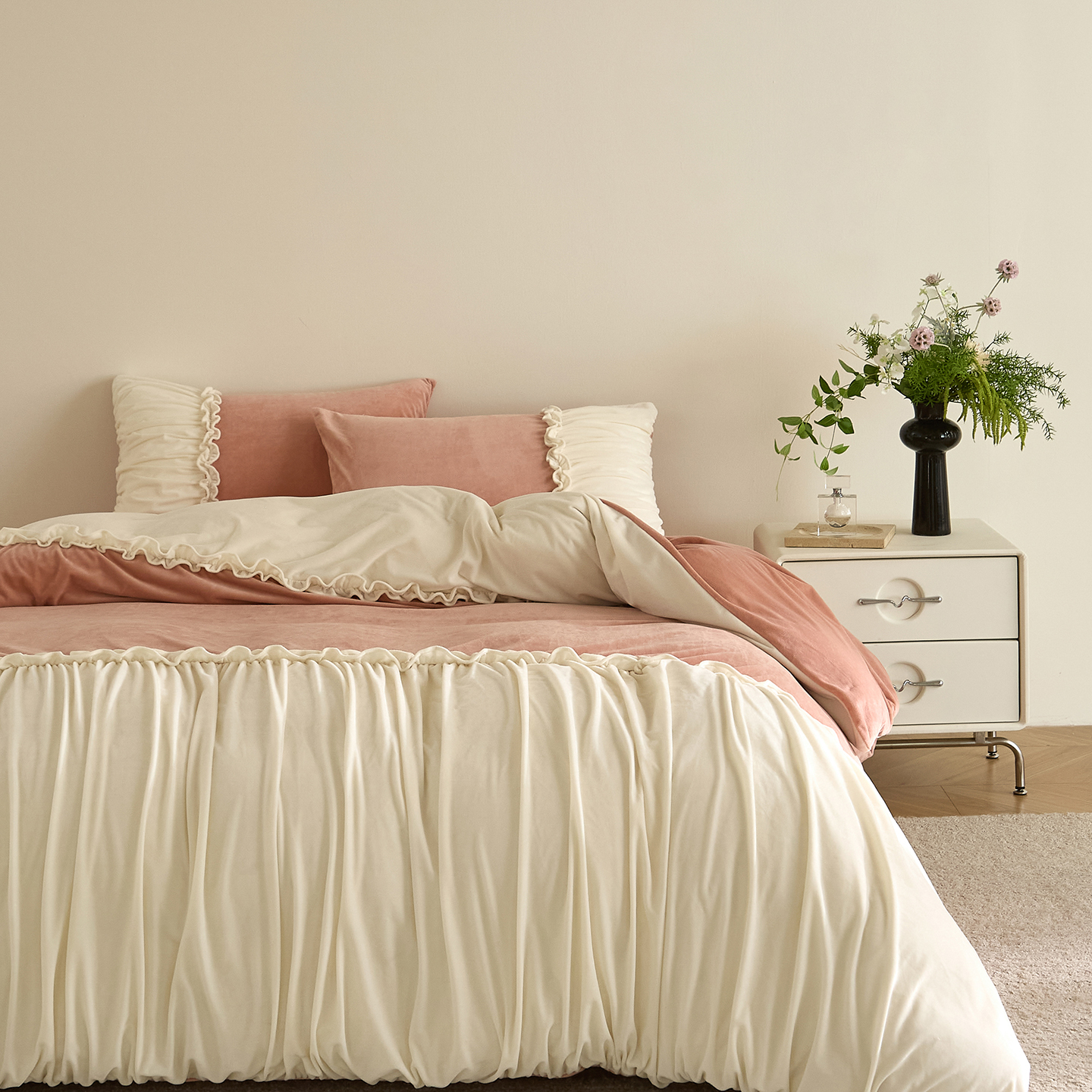 (总)ONE TWO ONE 1212025新款高支高密长绒棉贡缎精工提花四件套-壹朵甜甜(风格二)(为了各位老板们都有利润空间,平台控价券后不得低于228/318/338元,感谢您的配合与支持!),壹朵甜甜-白,壹朵甜甜-米