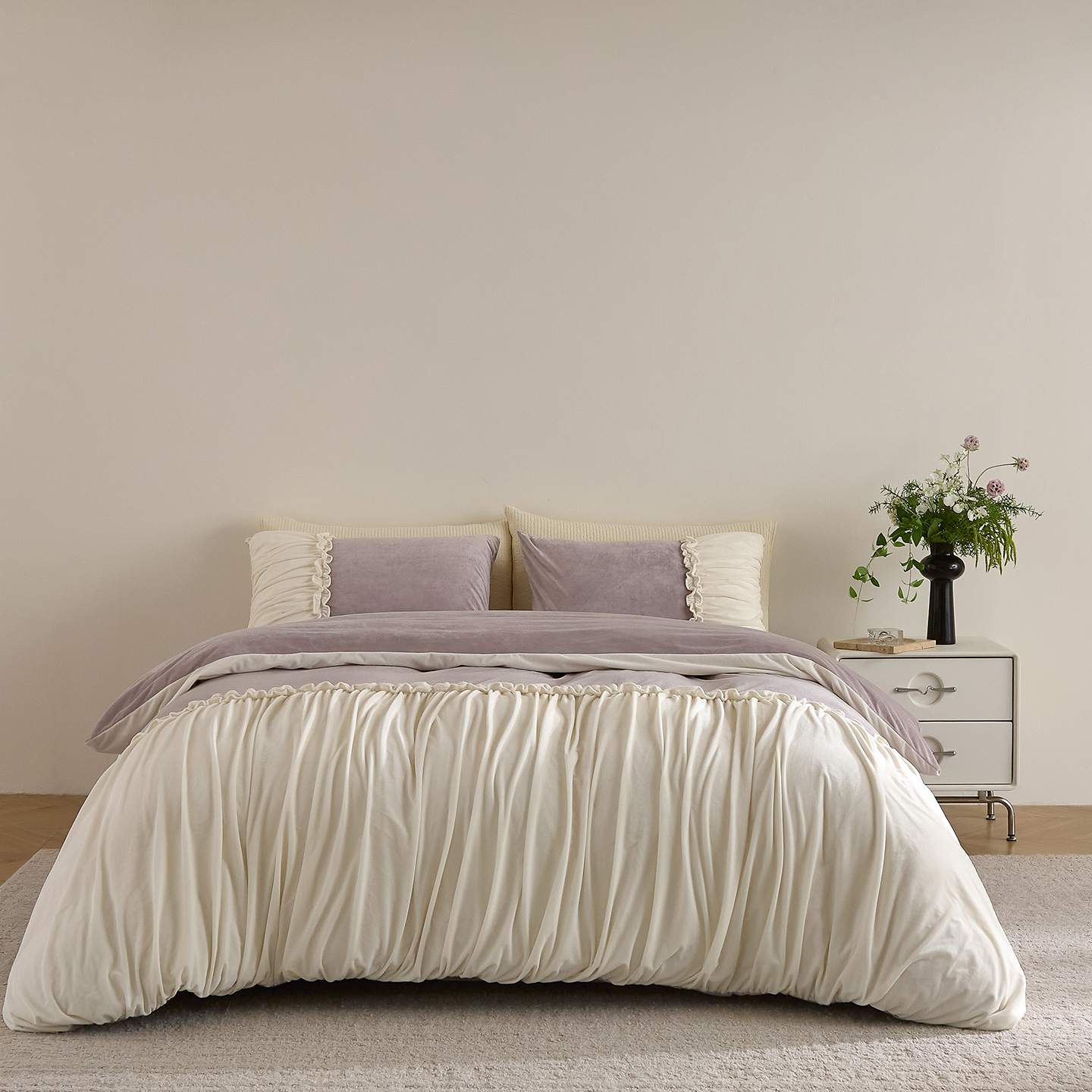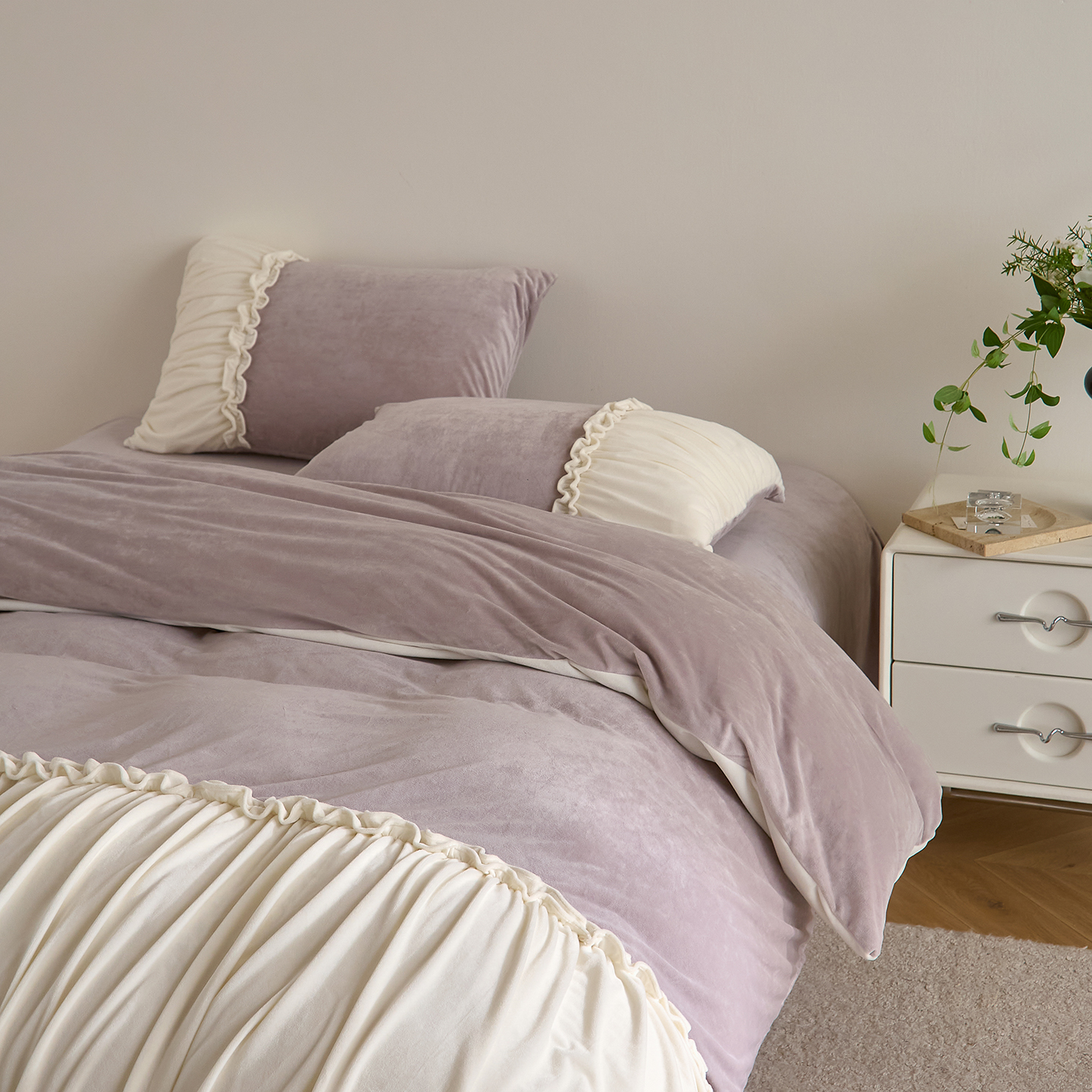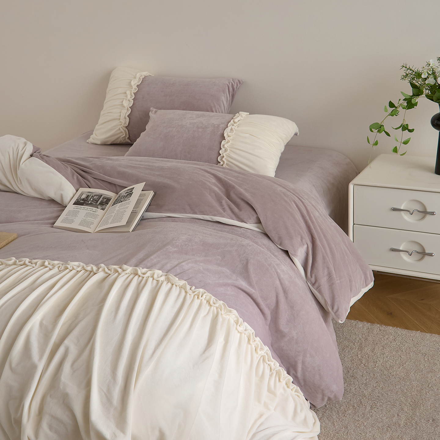 商品名称:ONE TWO ONE 121 【德芙绒】 2025秋冬新款牛奶绒 德芙绒宝宝绒 婴儿绒短毛绒四件套床单被套-安妮 安妮-灰