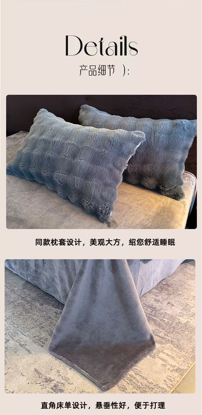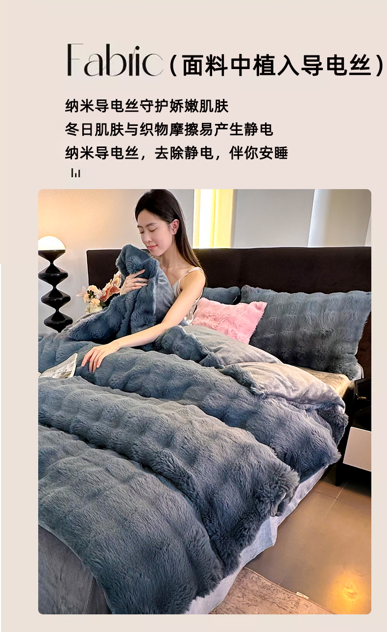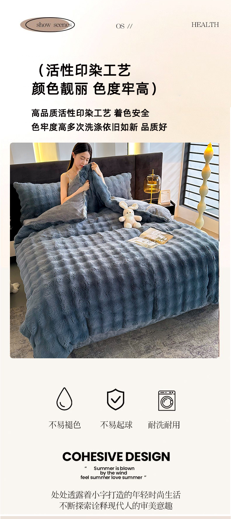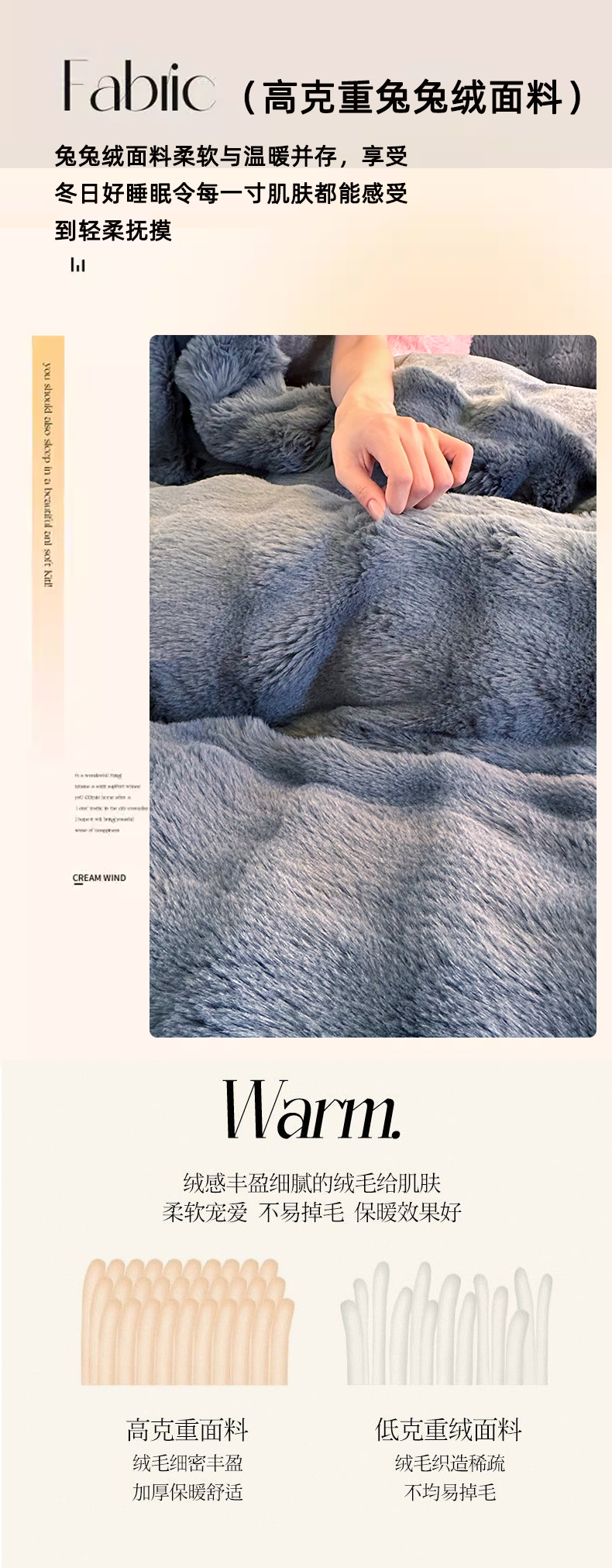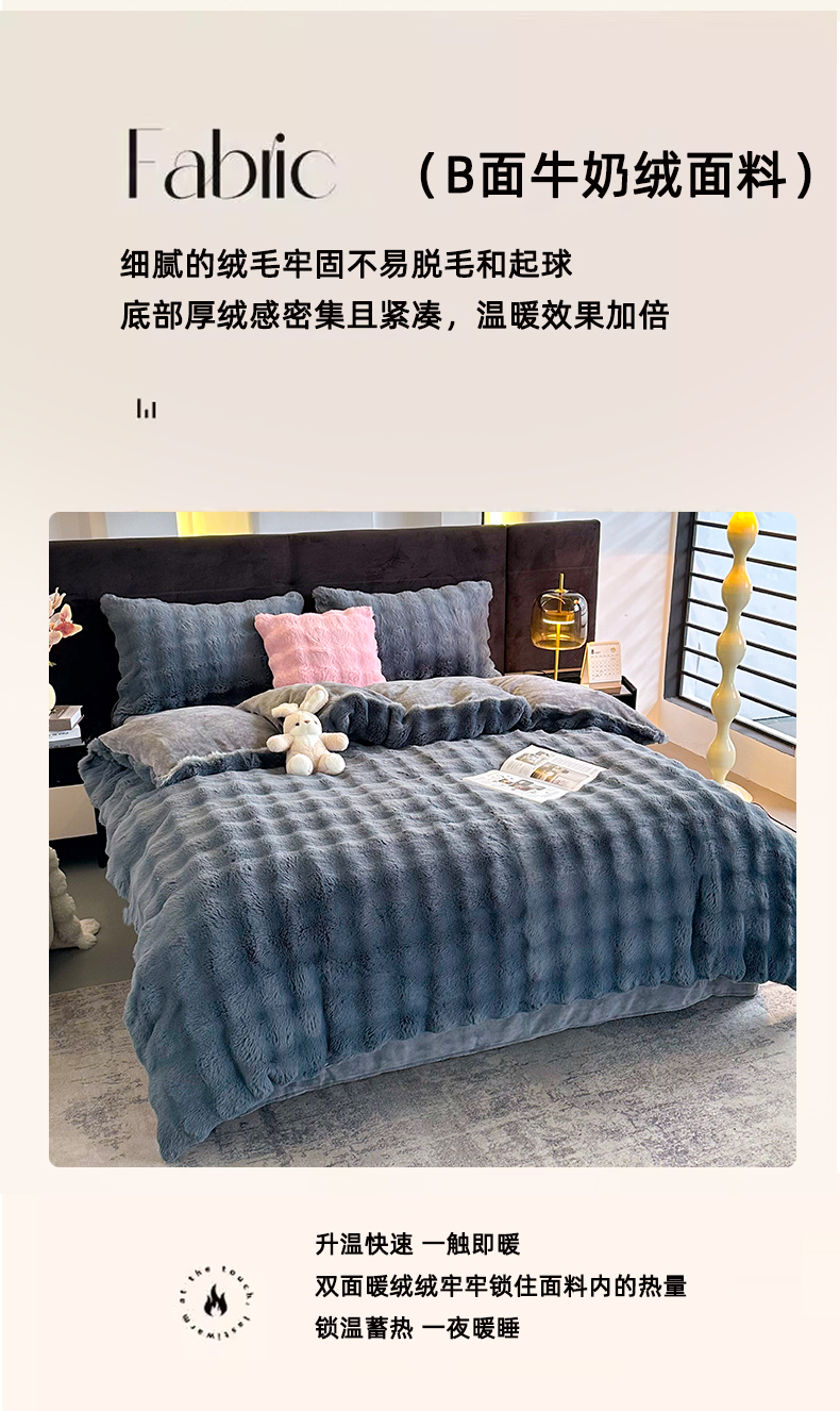 商品名称:无瑕家居 2025新款兔兔绒印花四件套 淡雅灰