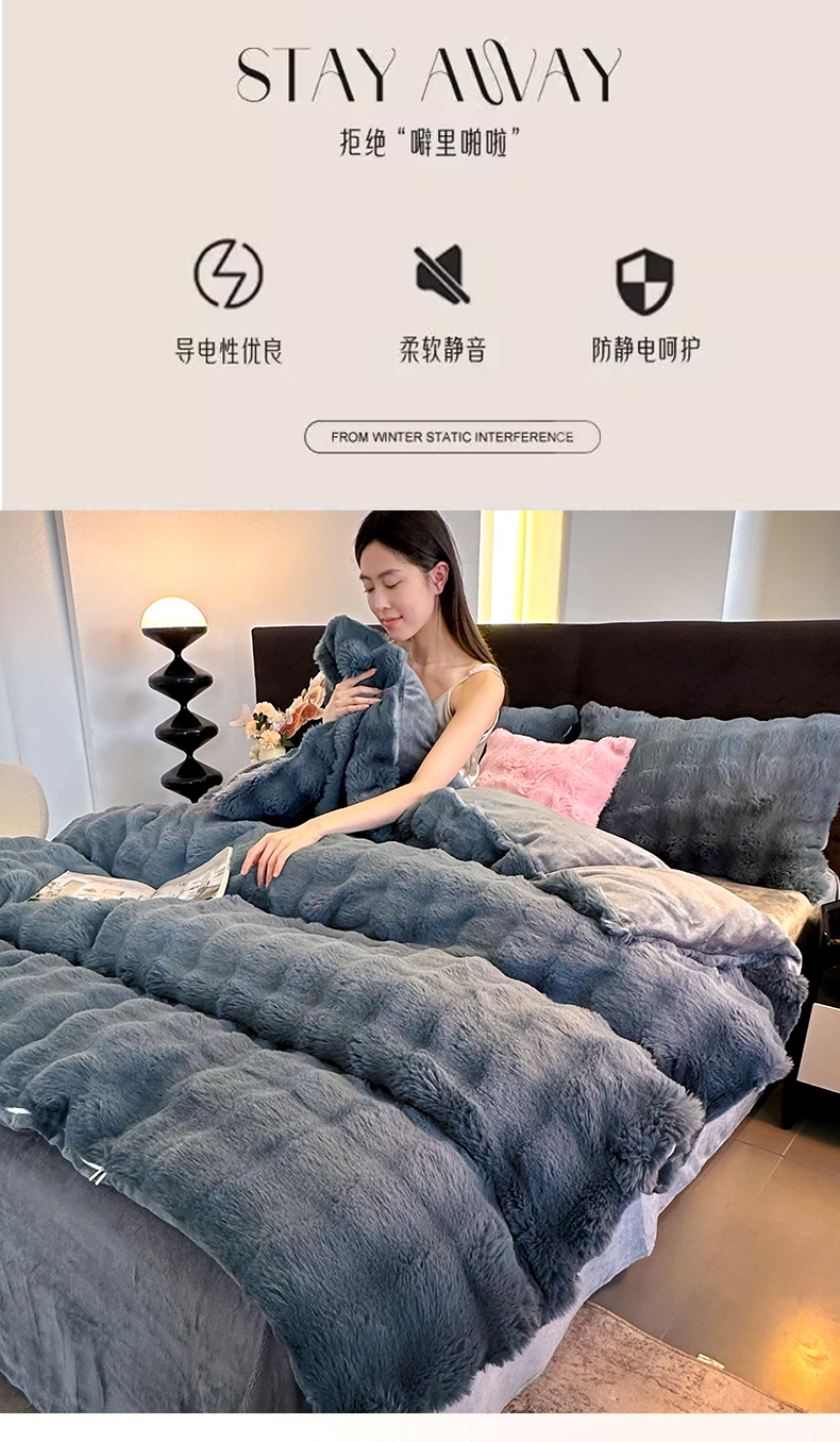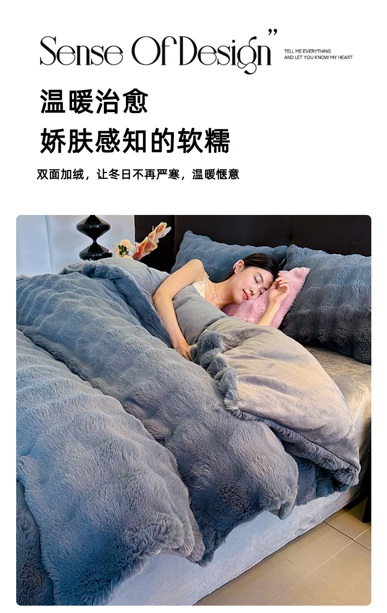 无瑕家居 2025新款兔兔绒印花四件套 淡雅灰