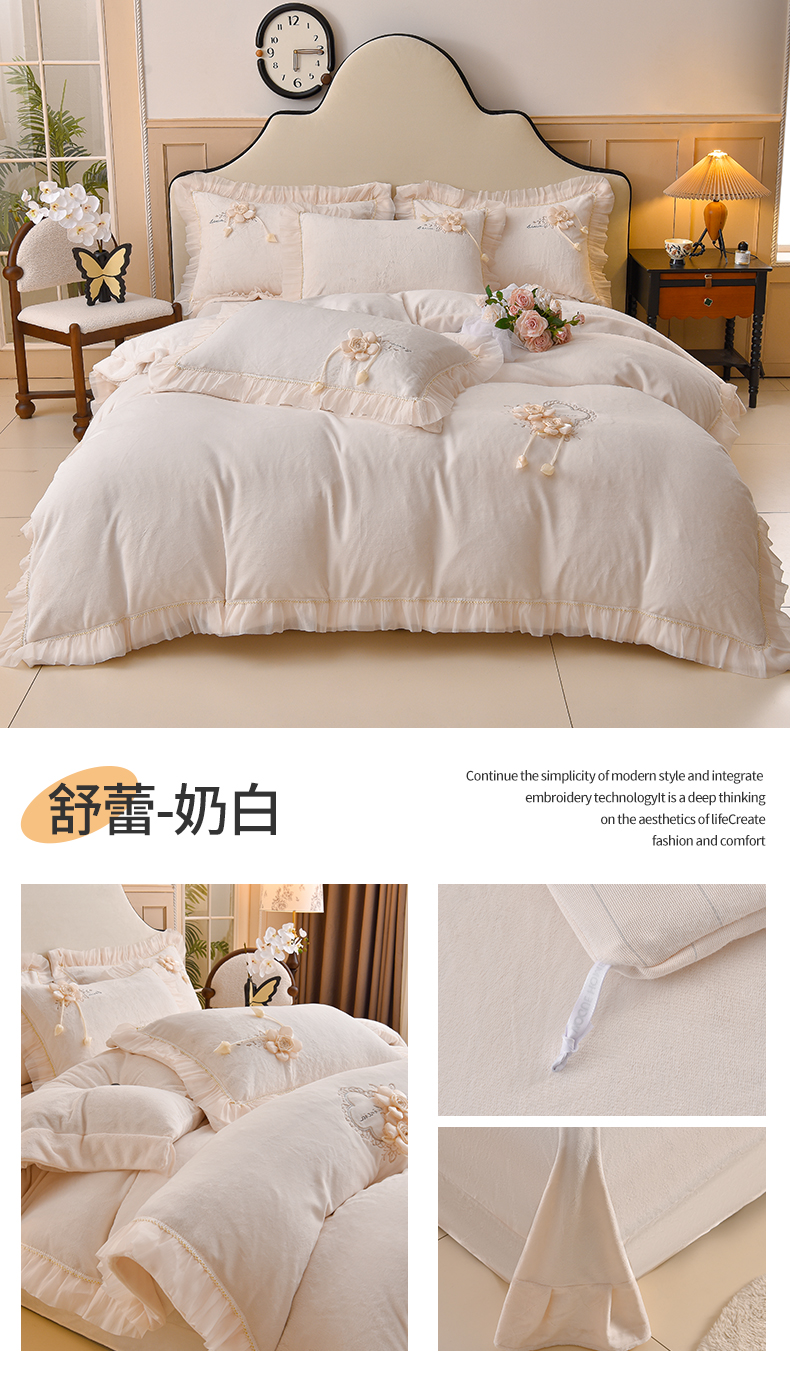 (总)鼎飞 2022新款高精密婴儿牛奶绒花边四件套-颜,颜-白玉,颜-果粉,颜-果青,颜-灰蓝,颜-竹灰
