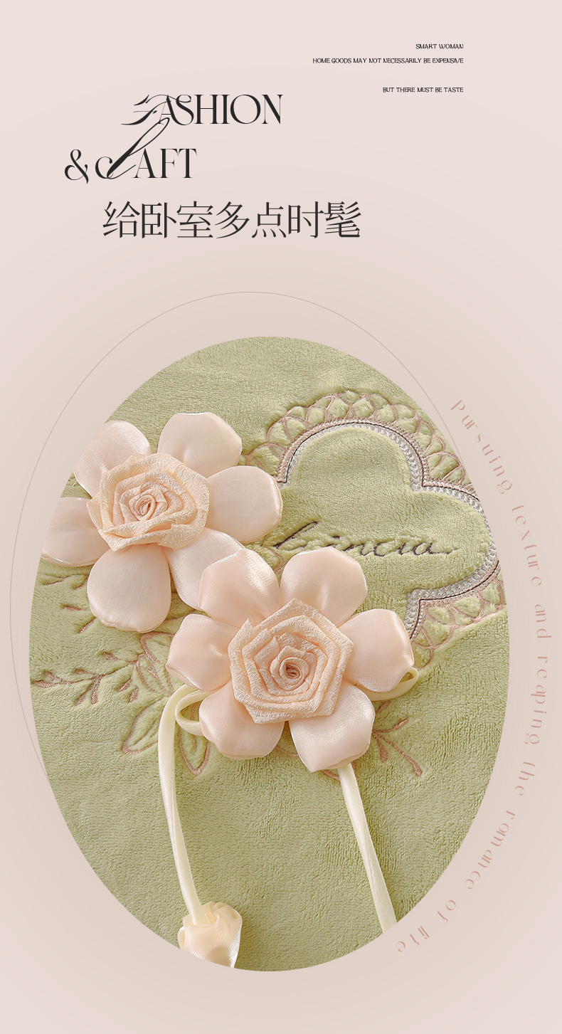 商品名称:鼎飞家纺 2025新款A类高克重牛奶绒绣花四件套--舒蕾系列 舒蕾-芬绿
