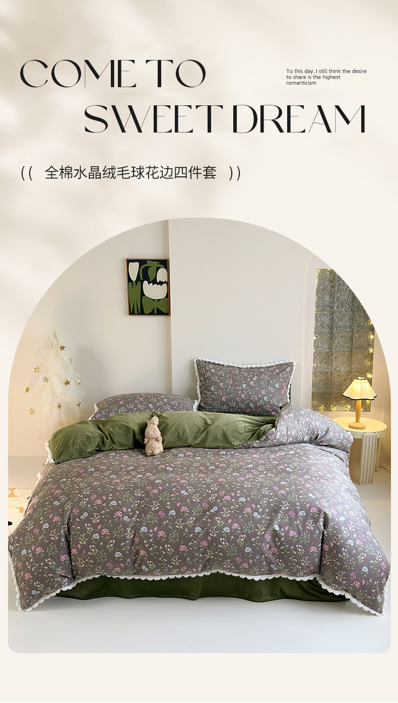商品名称:怡家居 2025秋冬新款毛球花边棉加绒四件套 千代兰