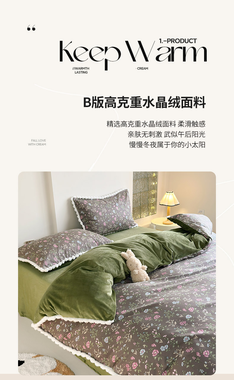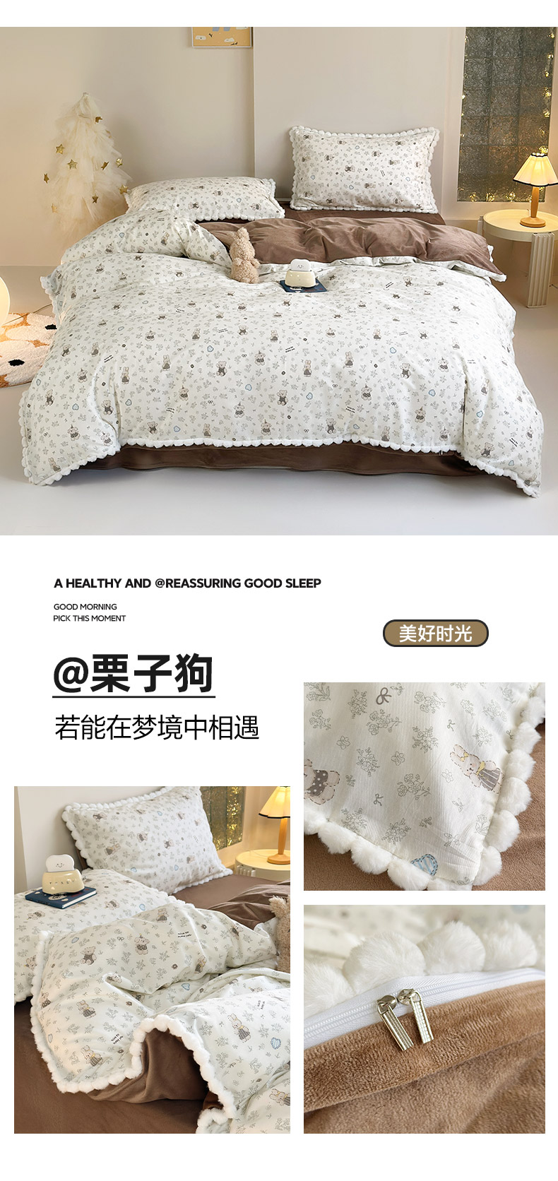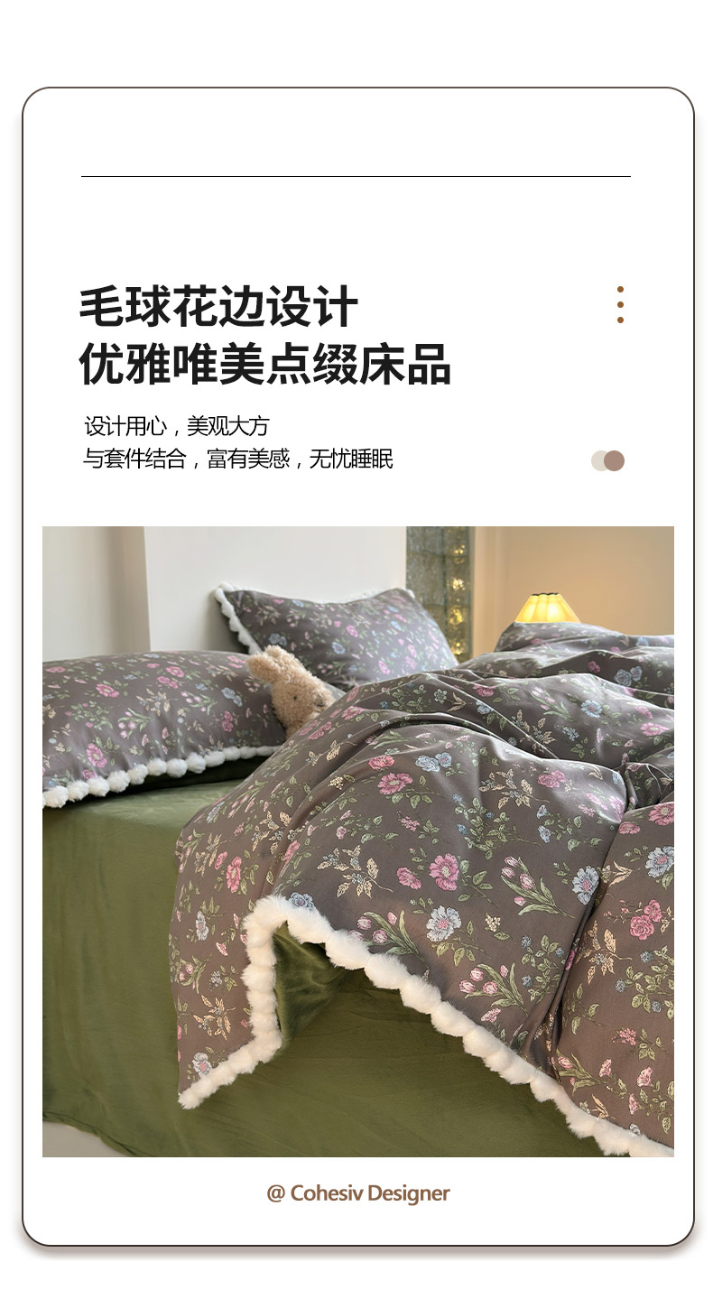 (总)怡家居 2025秋冬新款毛球花边棉加绒四件套,觅秋,花不误,花亦然,花影,剪影,栗子狗,千代兰,童趣,嫣然